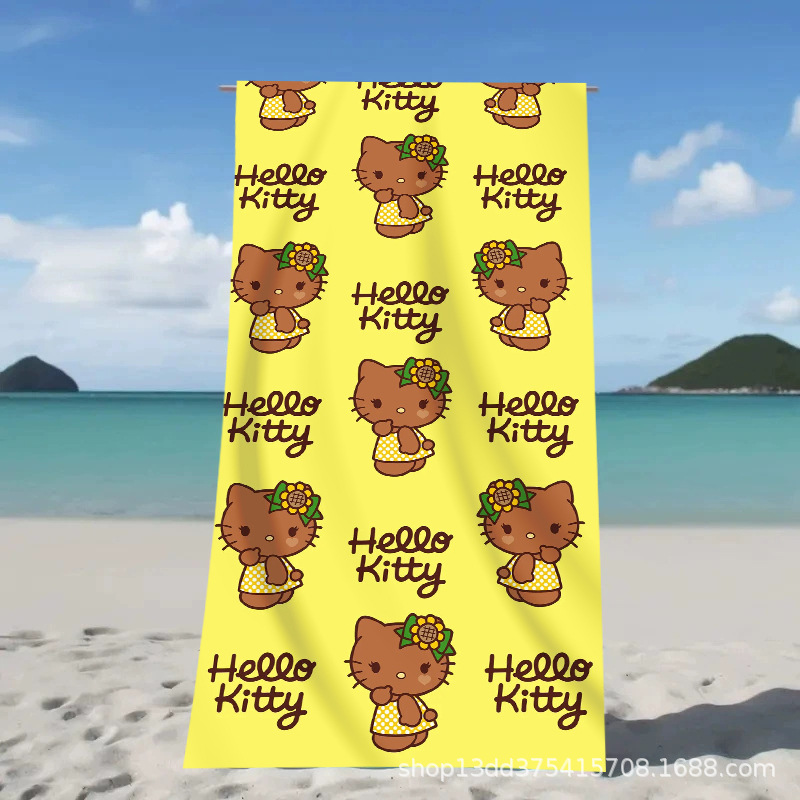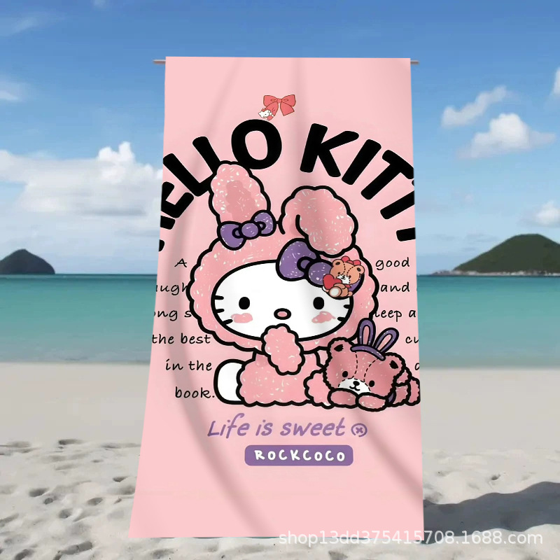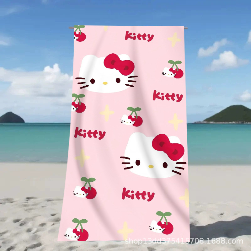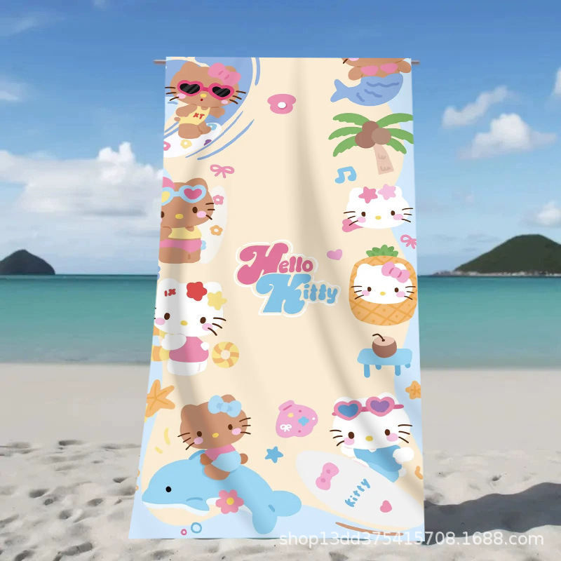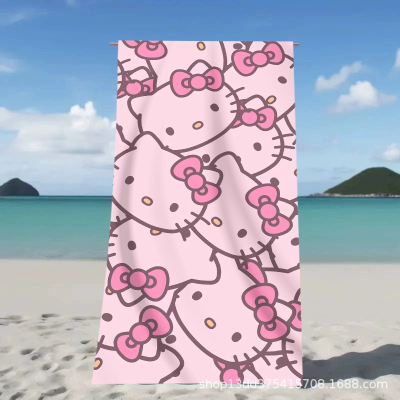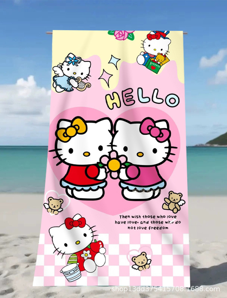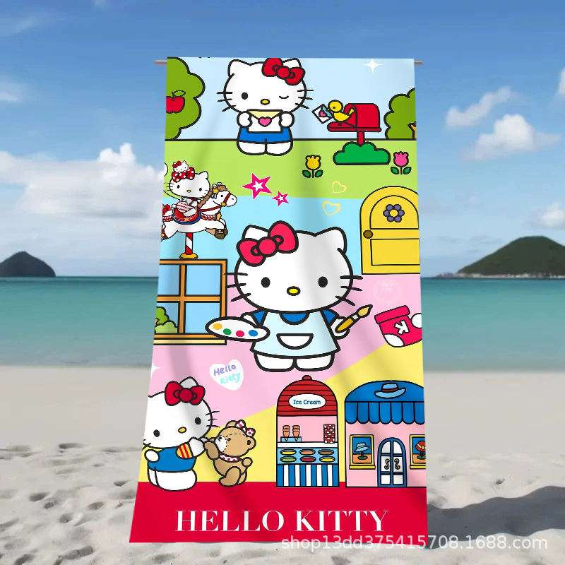 헬로키티 만화 비치 타월 양면 벨벳 목욕 타월 디지털 프린트 어린이 흡습 속건 타월 부모-자녀 목욕 타월스토어 가기