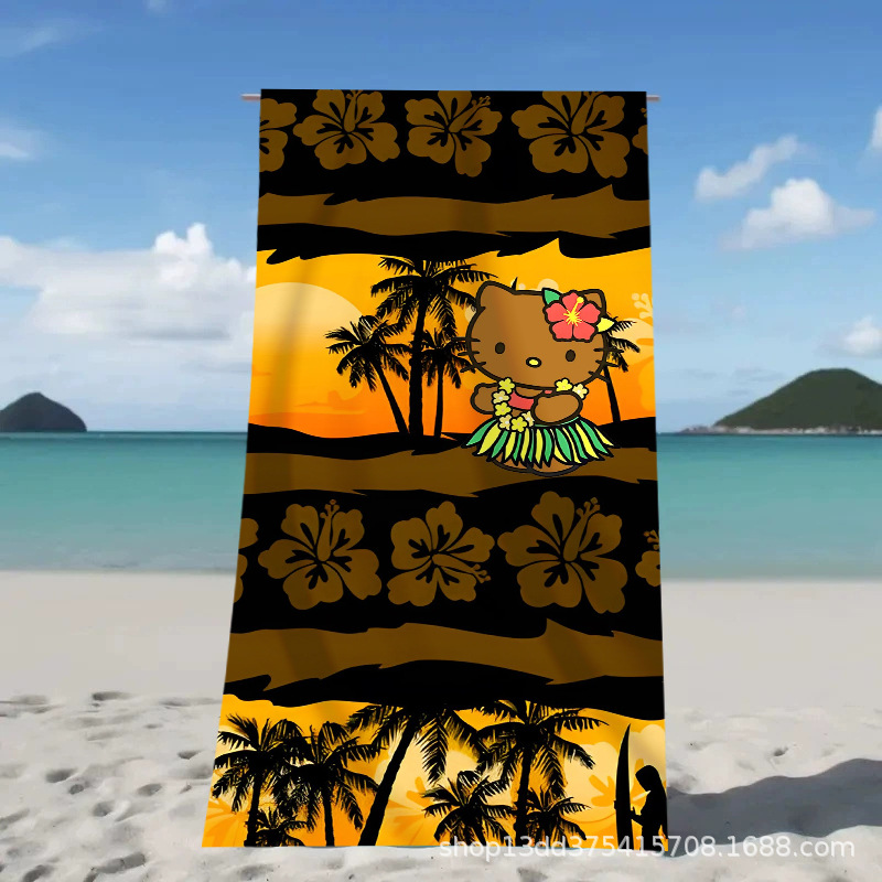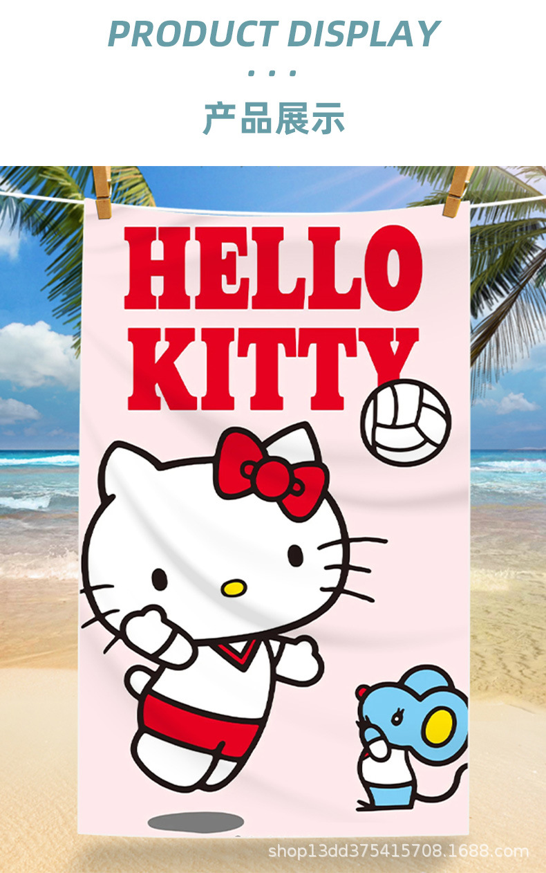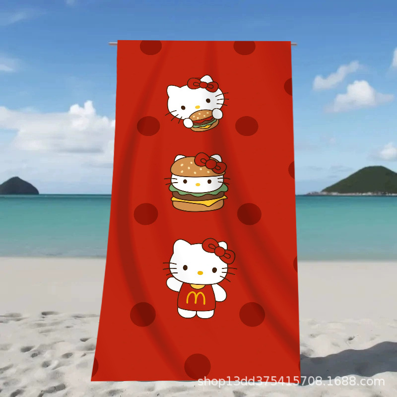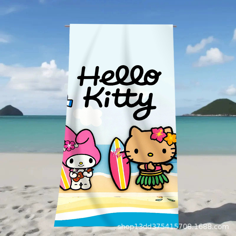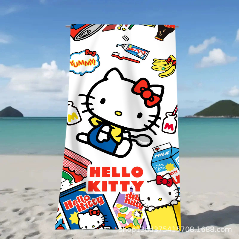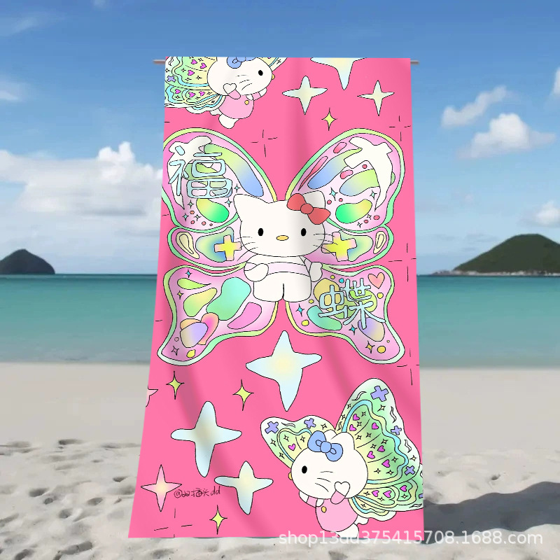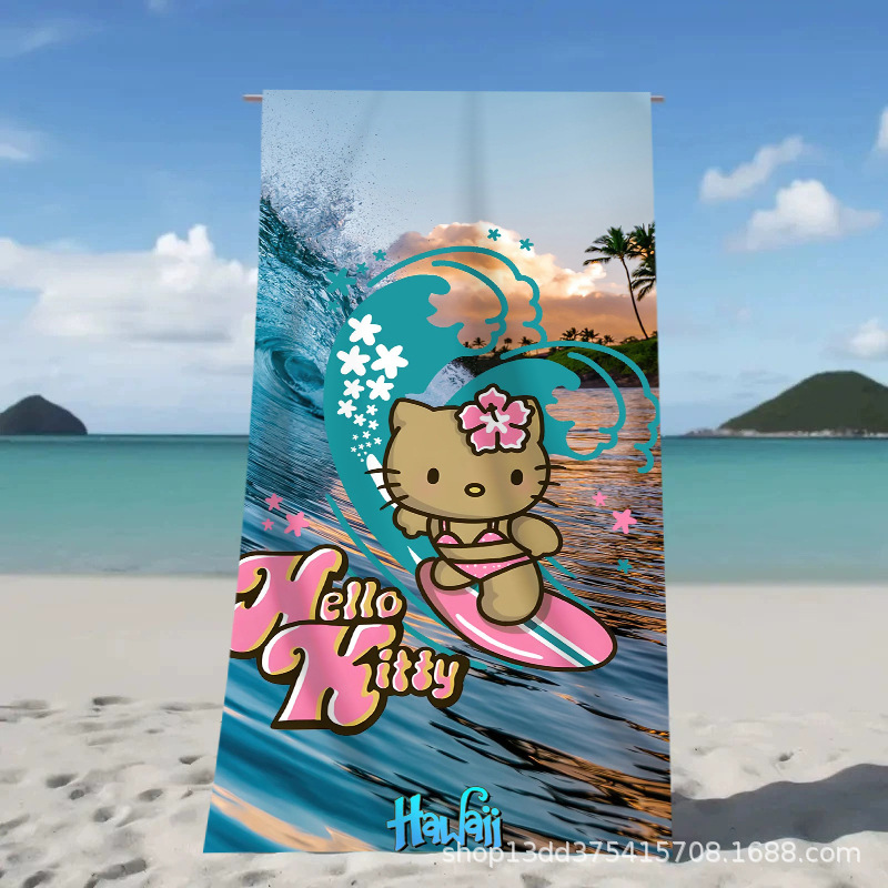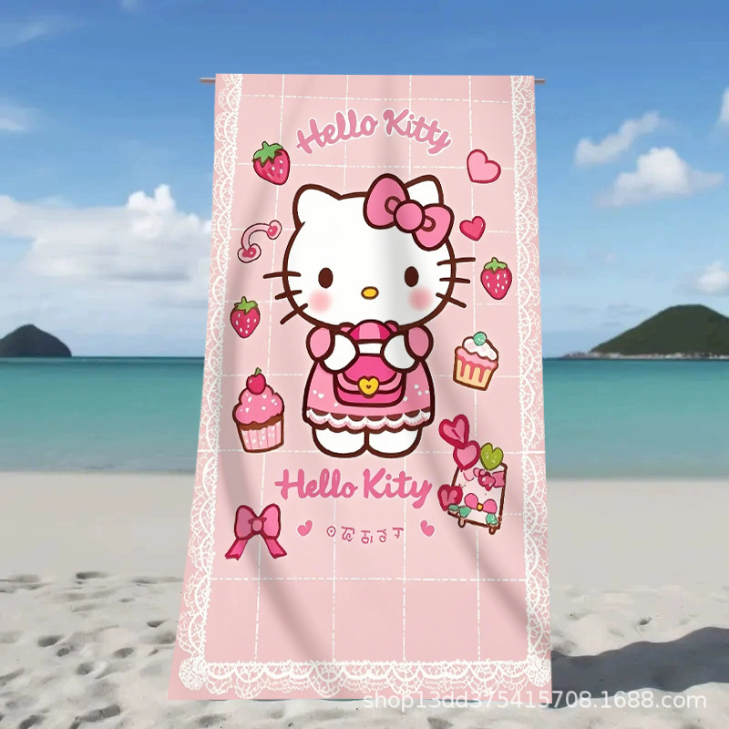 헬로키티 만화 비치 타월 양면 벨벳 목욕 타월 디지털 프린트 어린이 흡습 속건 타월 부모-자녀 목욕 타월스토어 가기