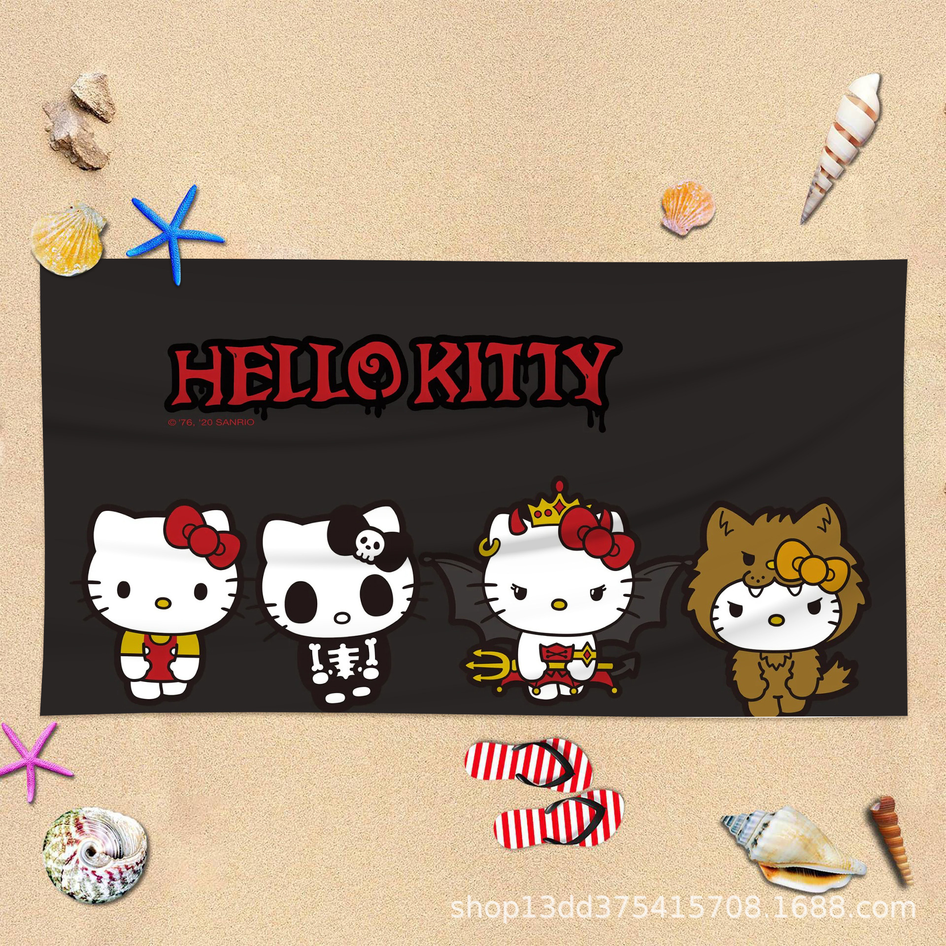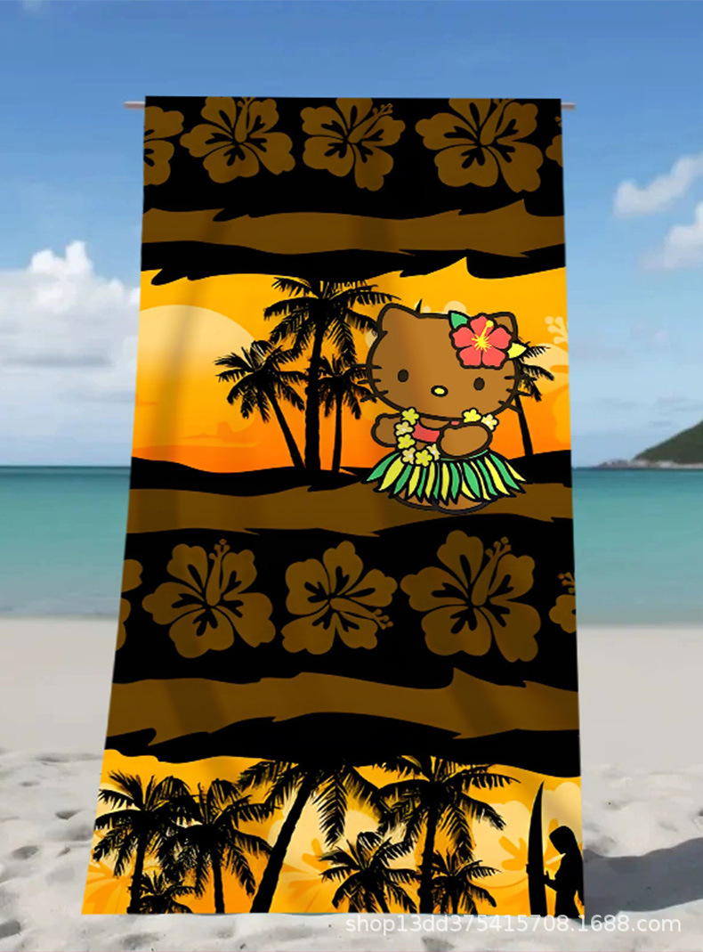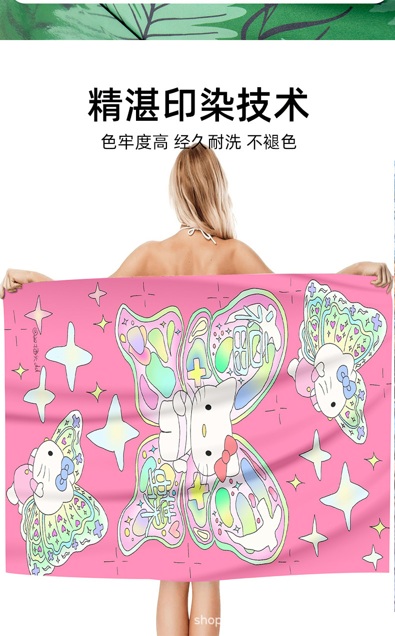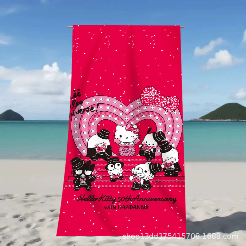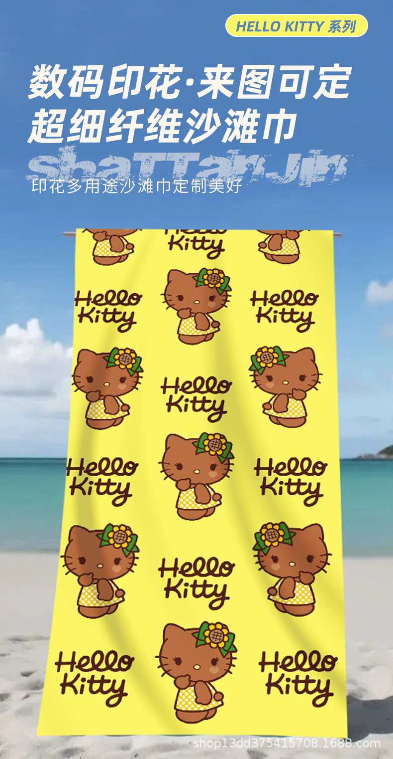 헬로키티 만화 비치 타월 양면 벨벳 목욕 타월 디지털 프린트 어린이 흡습 속건 타월 부모-자녀 목욕 타월스토어 가기