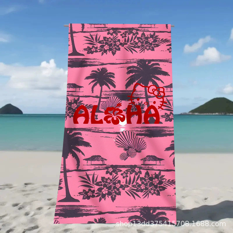 헬로키티 만화 비치 타월 양면 벨벳 목욕 타월 디지털 프린트 어린이 흡습 속건 타월 부모-자녀 목욕 타월