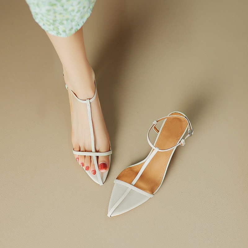 여름 여성용 디자인 틈새 프렌치 두꺼운 굽 하이힐, 뾰족한 발가락과 얇은 스트랩 조합, 오픈 토우 캣힐, 섹시 샌들
