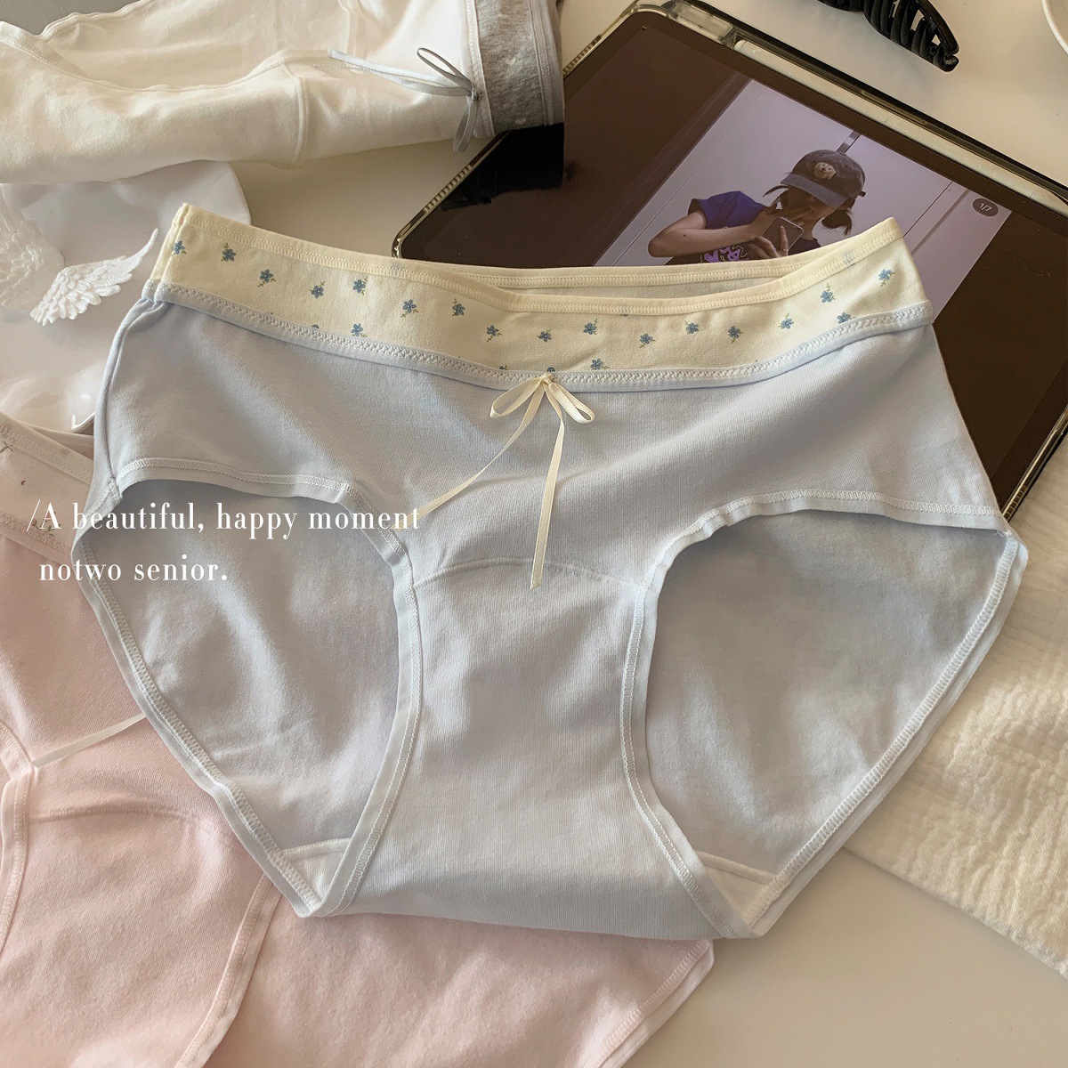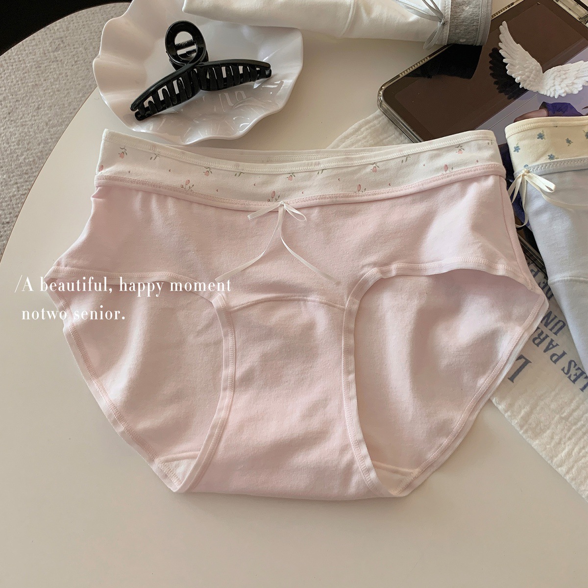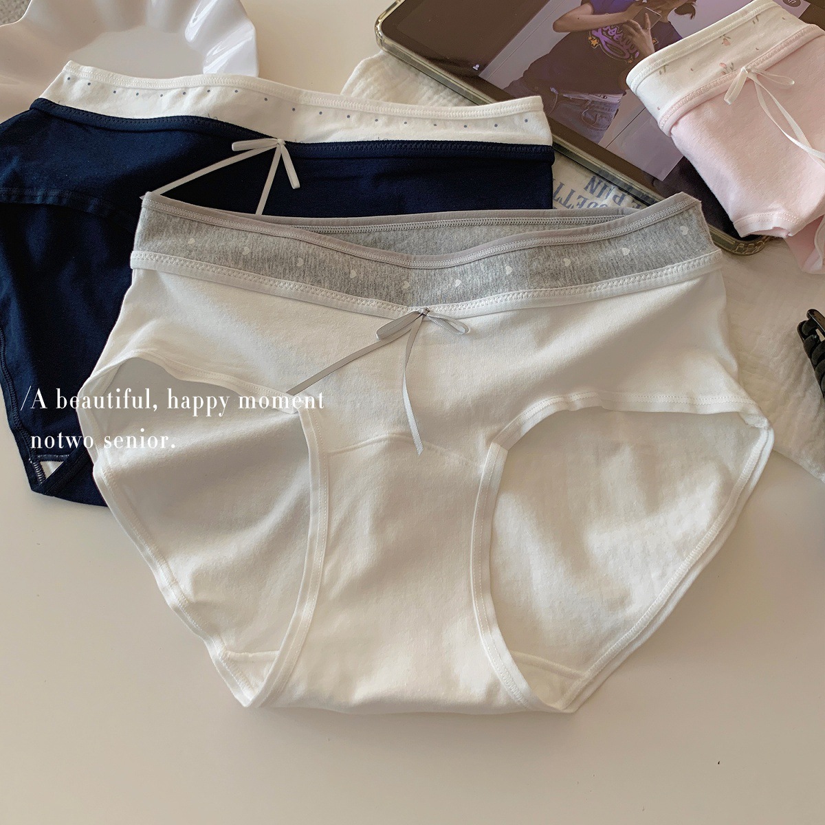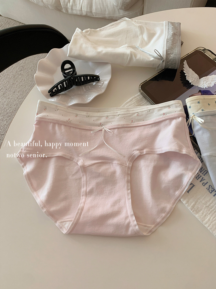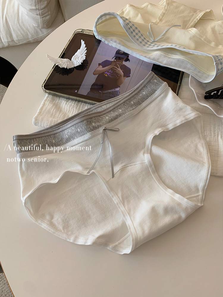 10A 엑스트라 롱 팬츠, 항균 여아 속옷, 배색 스플라이싱, 미드 웨이스트, 엉덩이를 감싸지 않는 여름용 얇은 삼각형스토어 가기