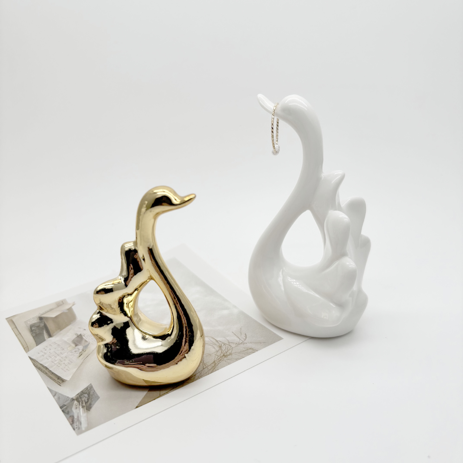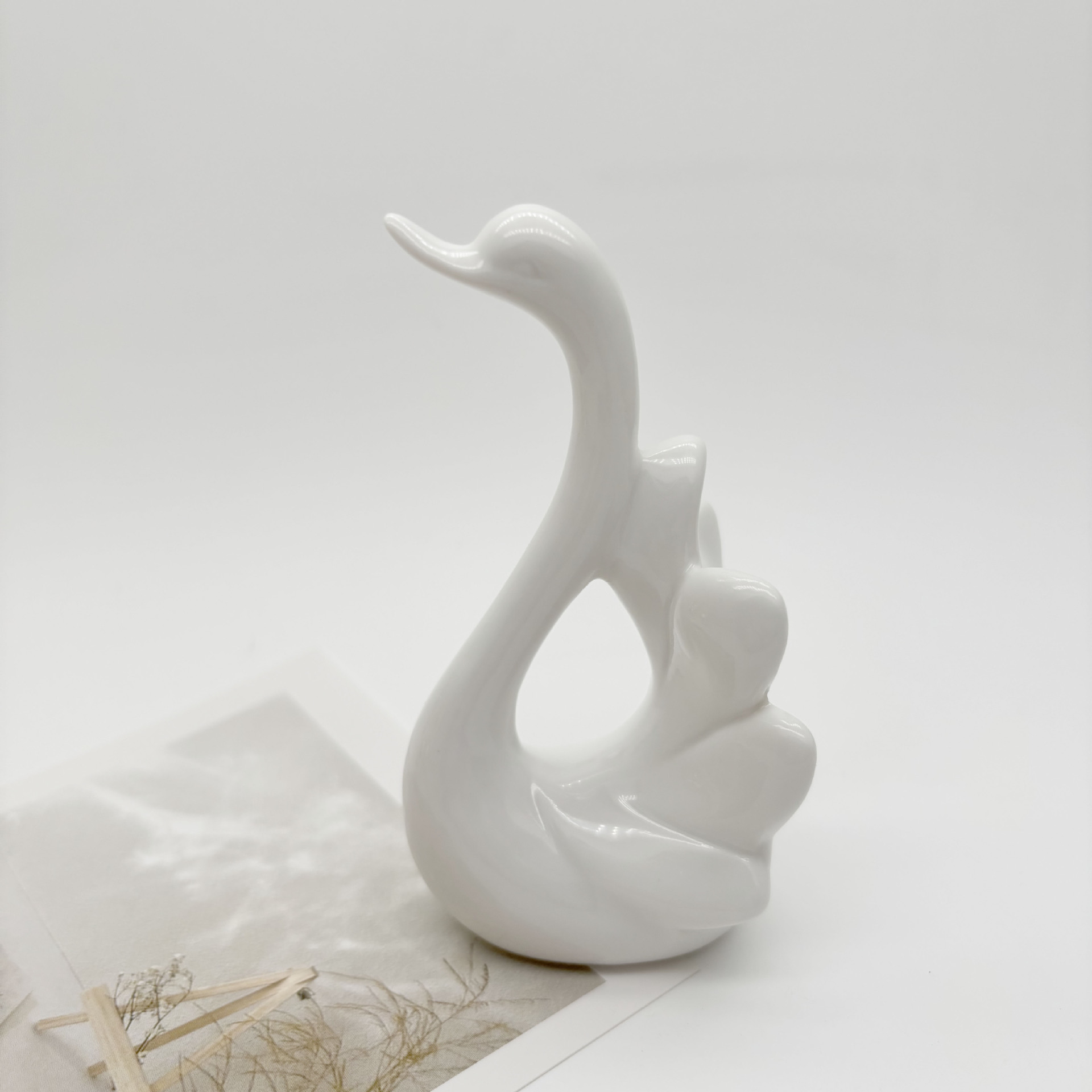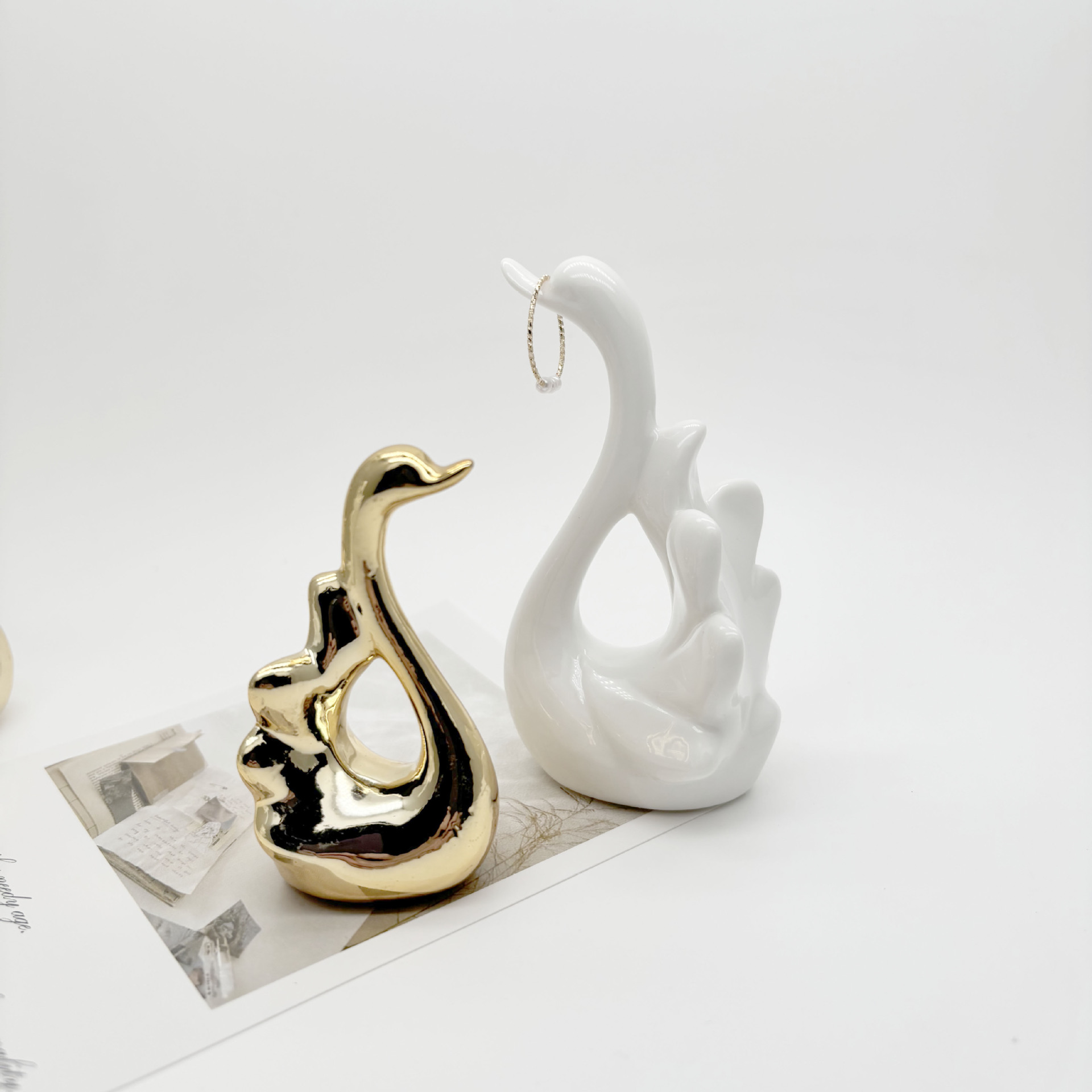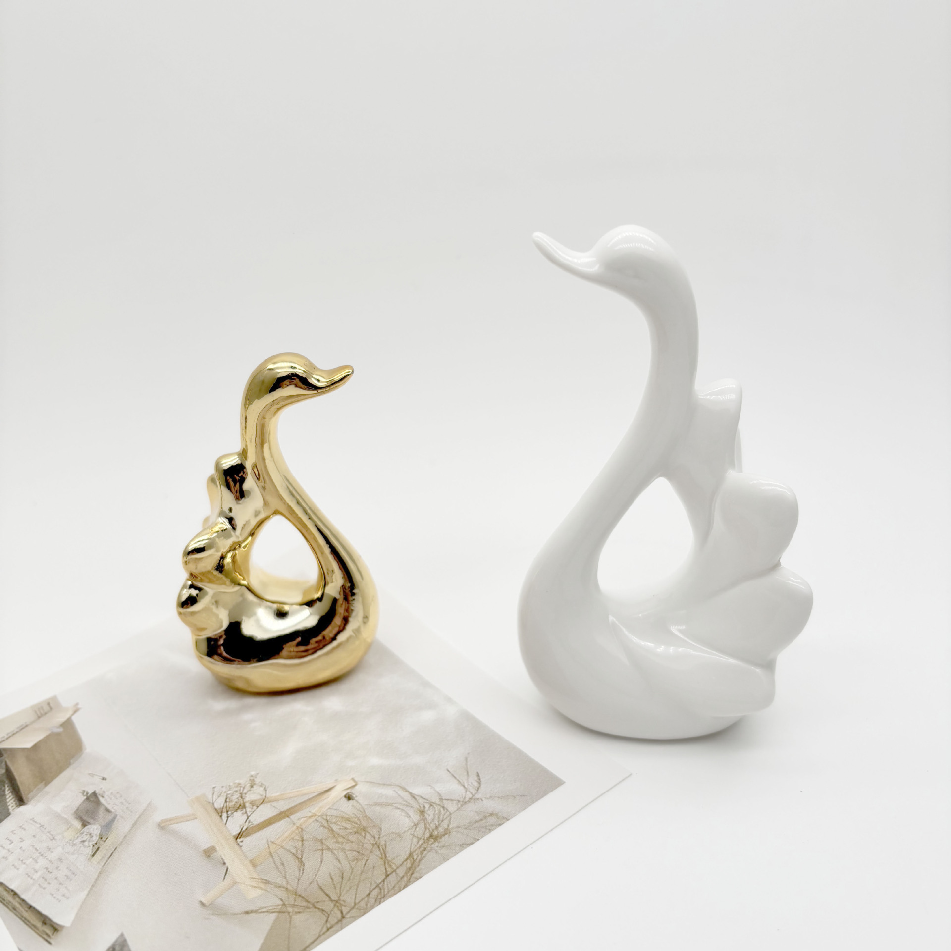 백조 데스크탑 장식품 북유럽 세라믹 홈 공예품 황금색 흰색 머리를 숙인 백조
