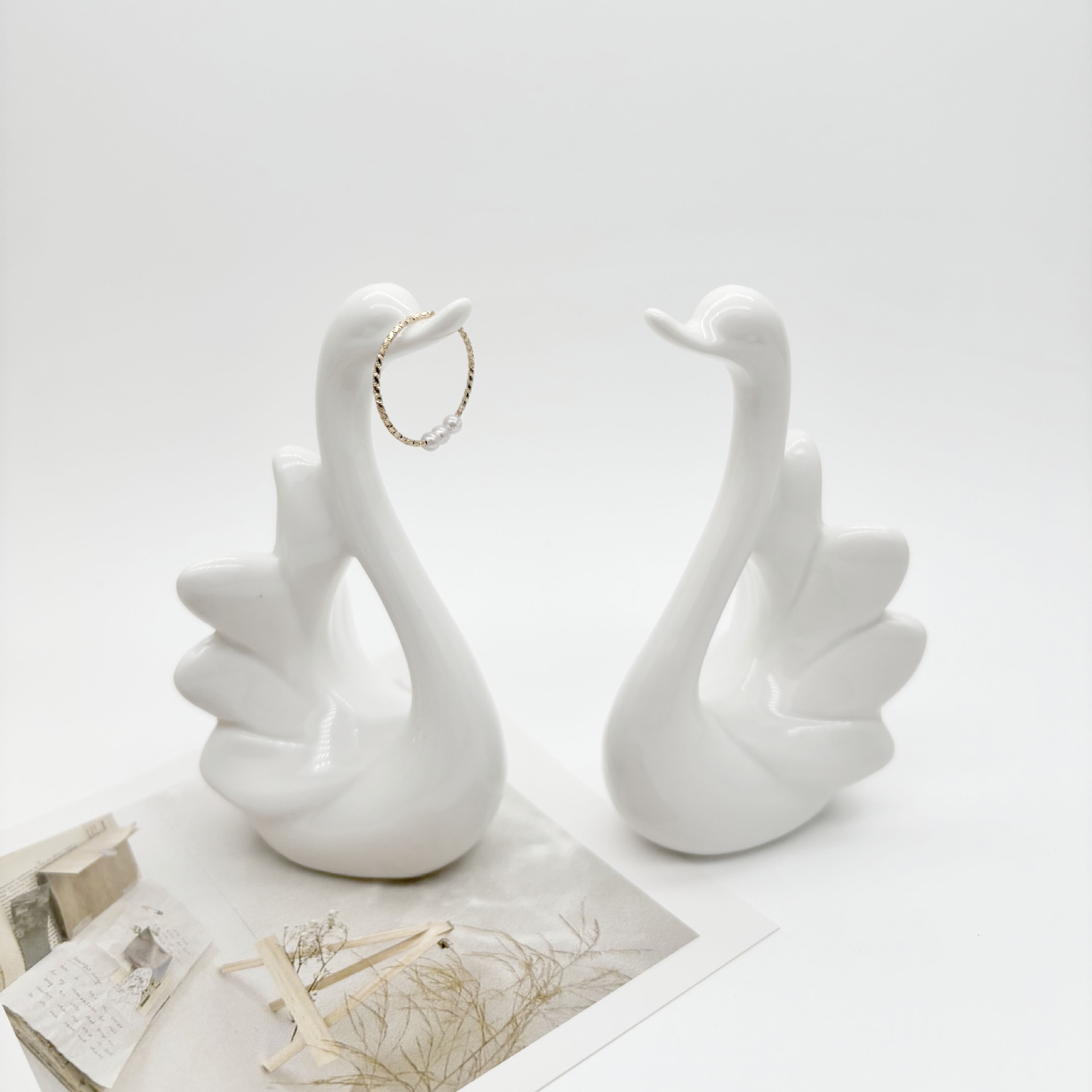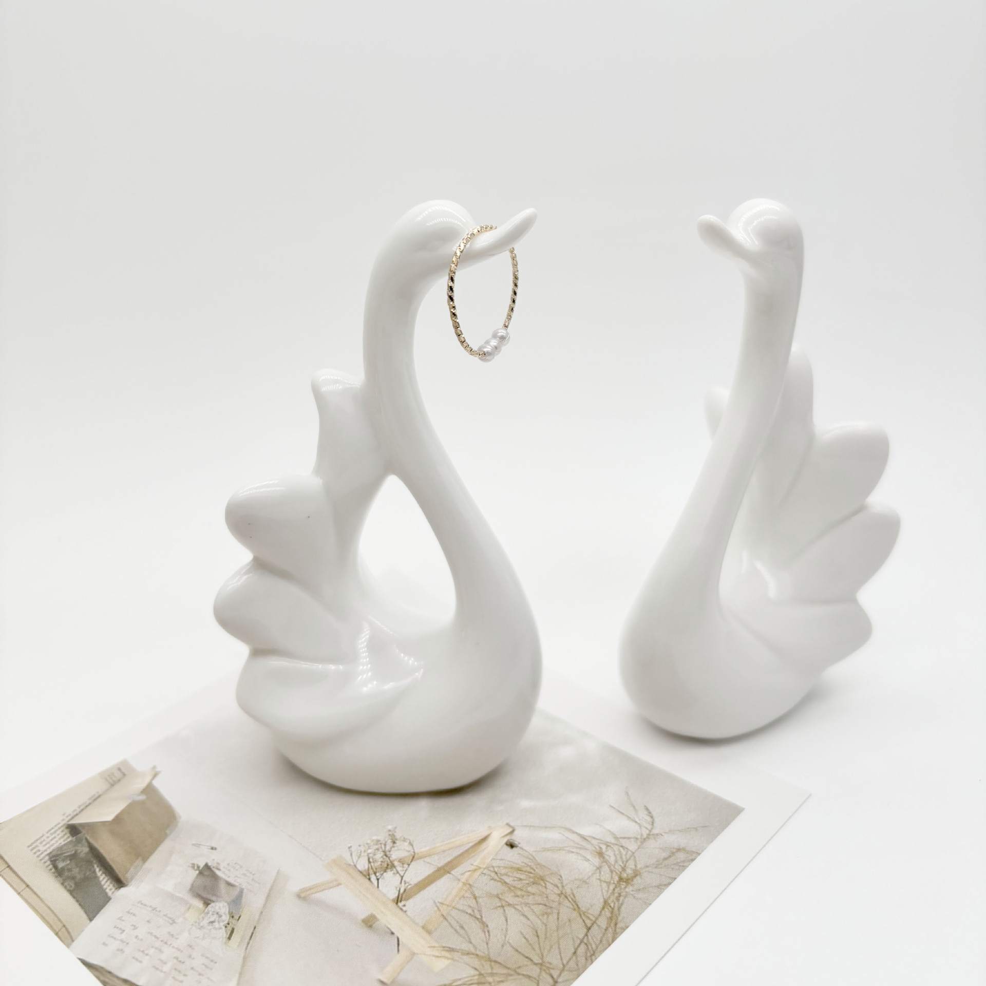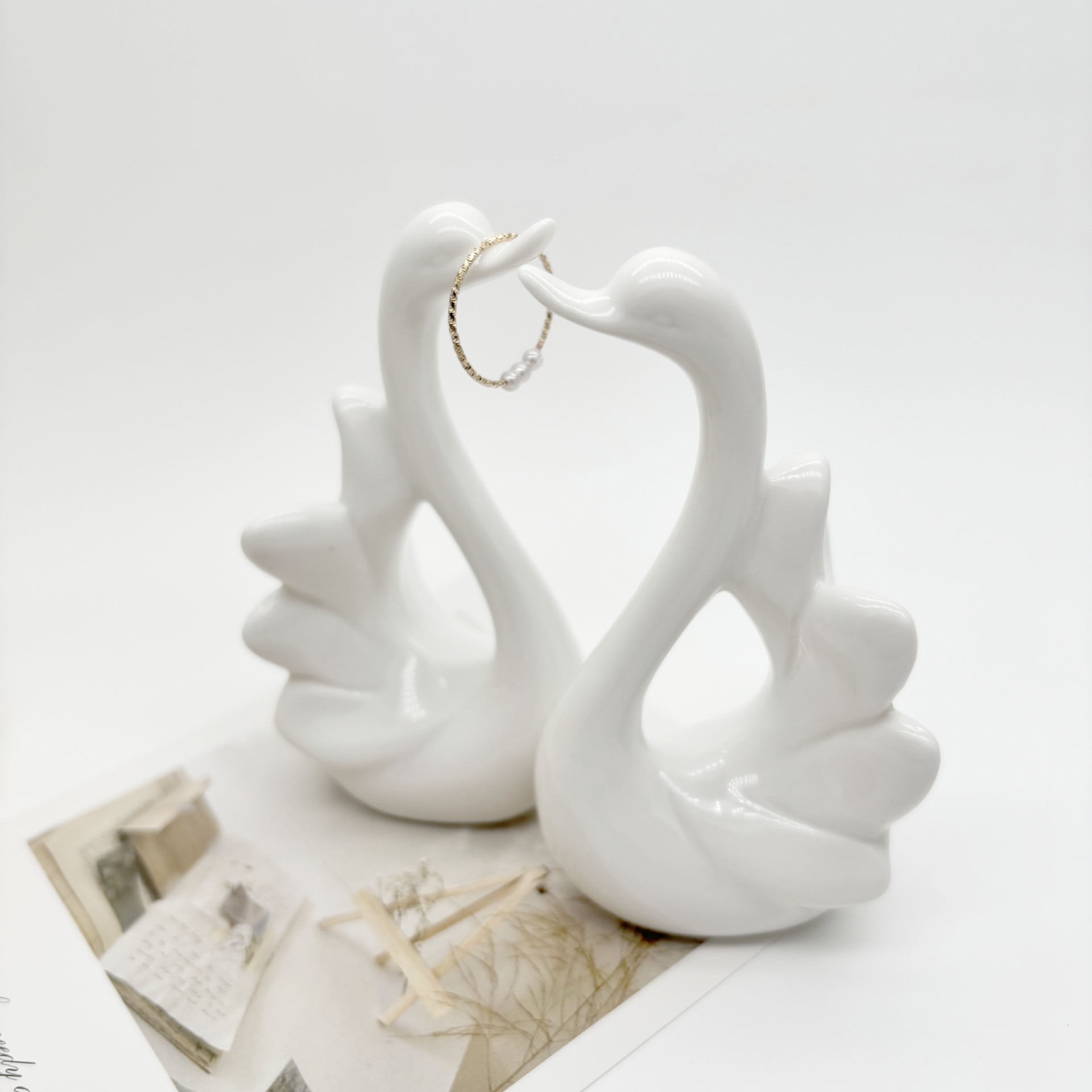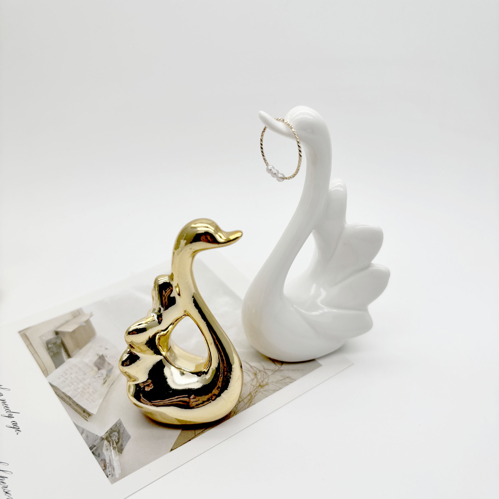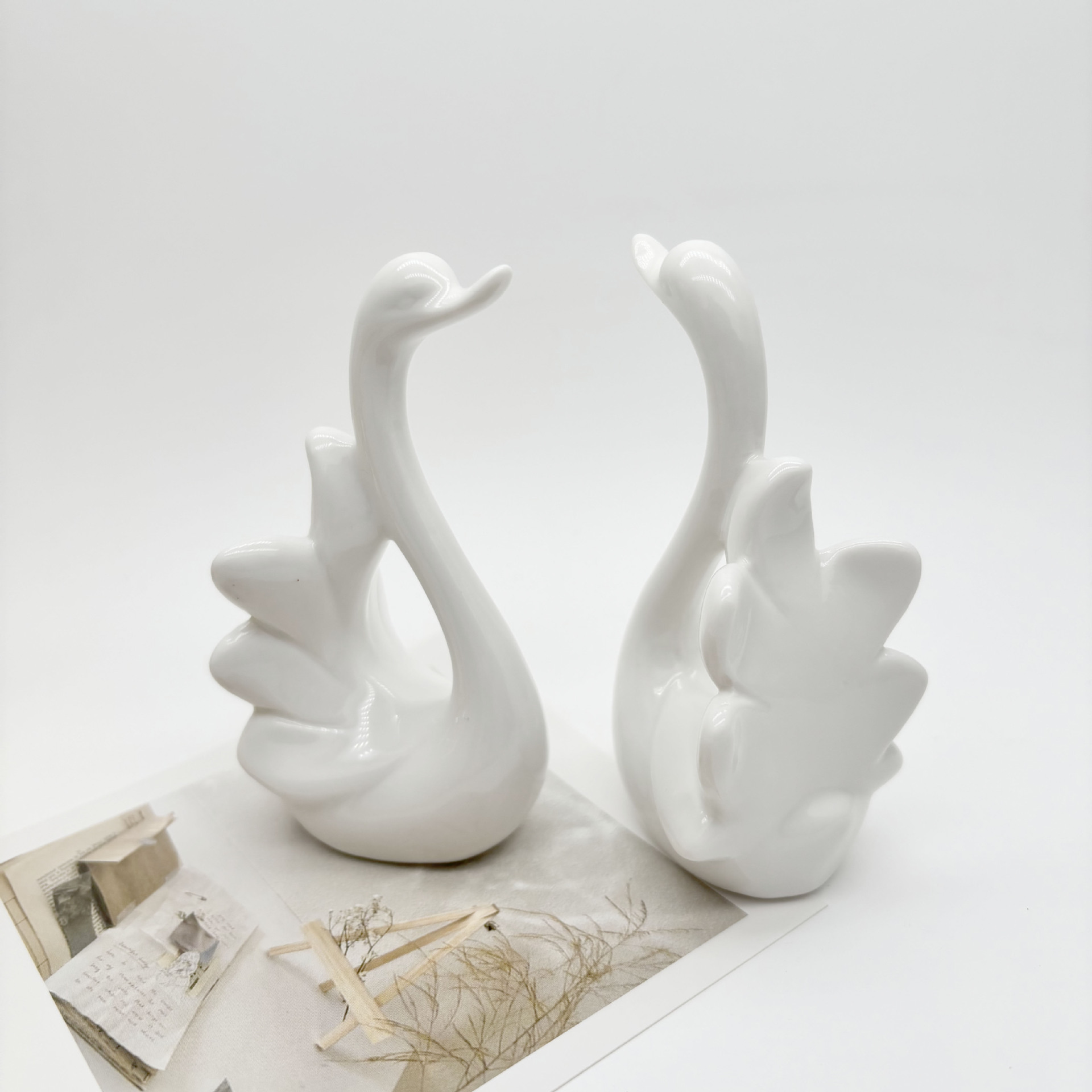백조 데스크탑 장식품 북유럽 세라믹 홈 공예품 황금색 흰색 머리를 숙인 백조