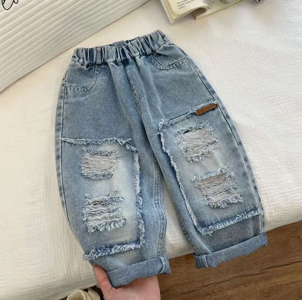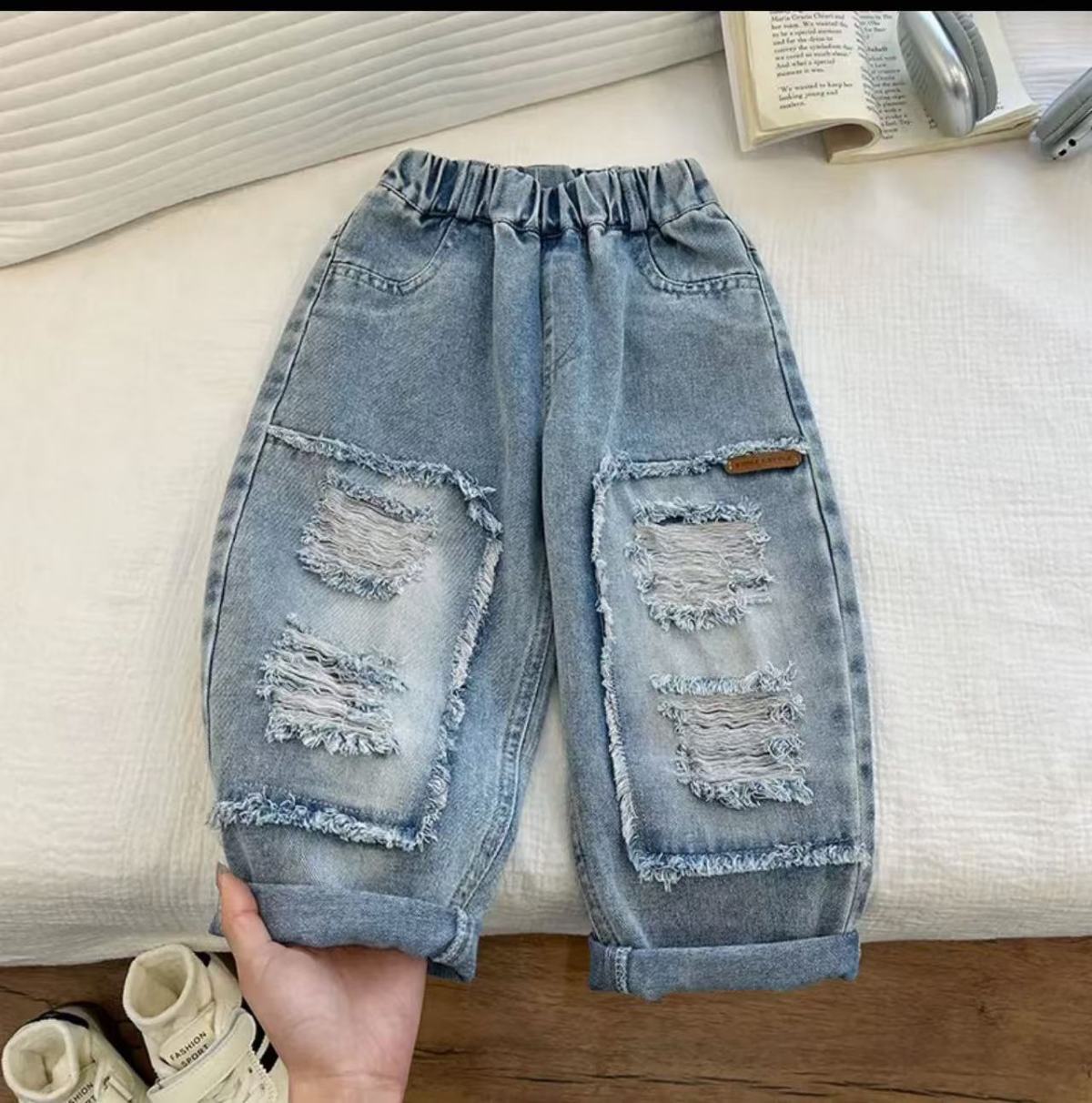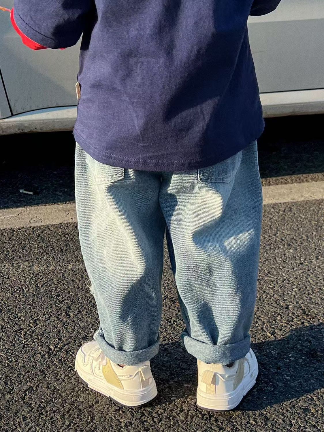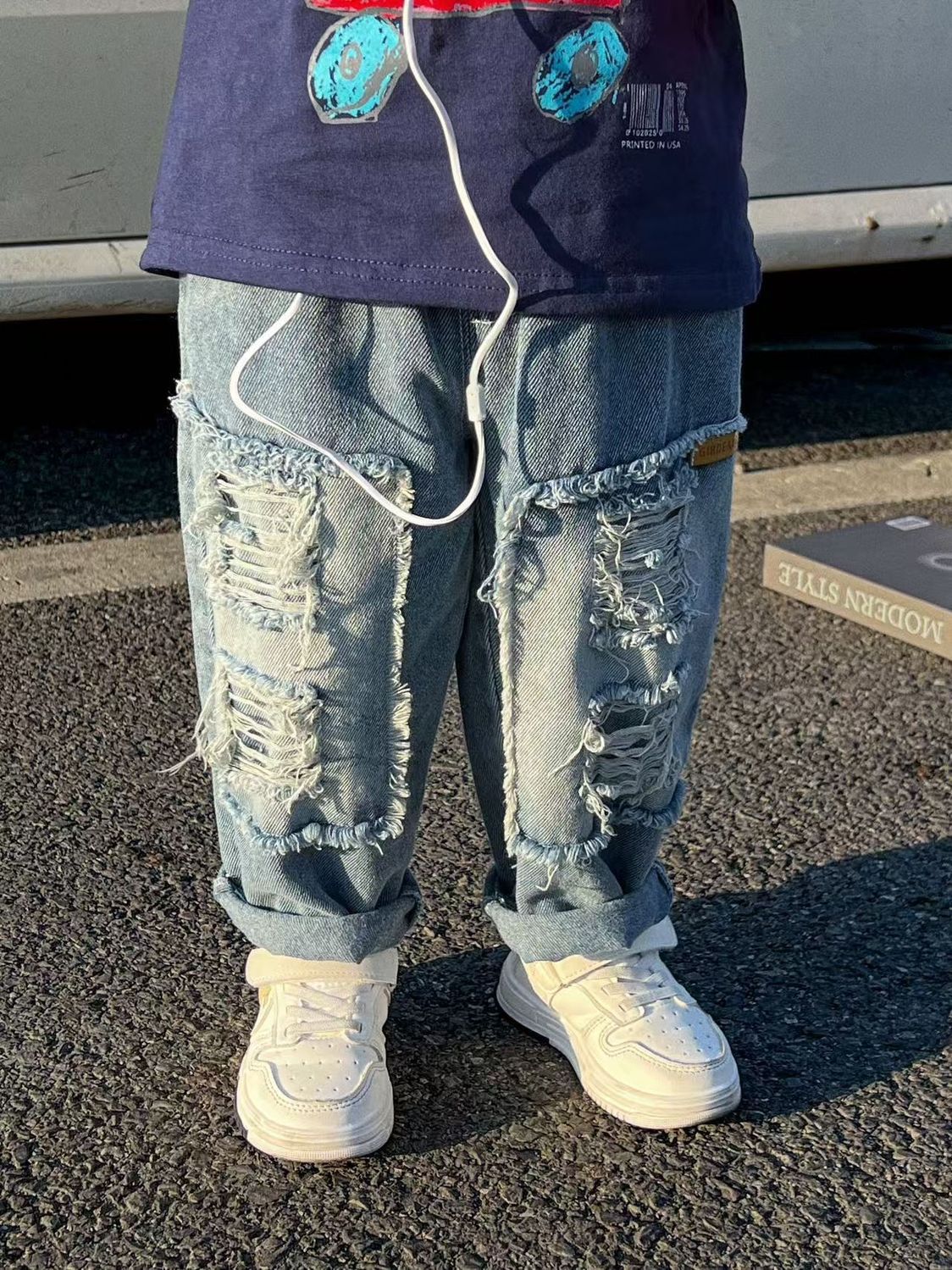 남아용 데미지 봄가을 청바지 2025 신상 아동 한국 스타일 캐주얼 패션 트렌디 루즈핏 팬츠스토어 가기