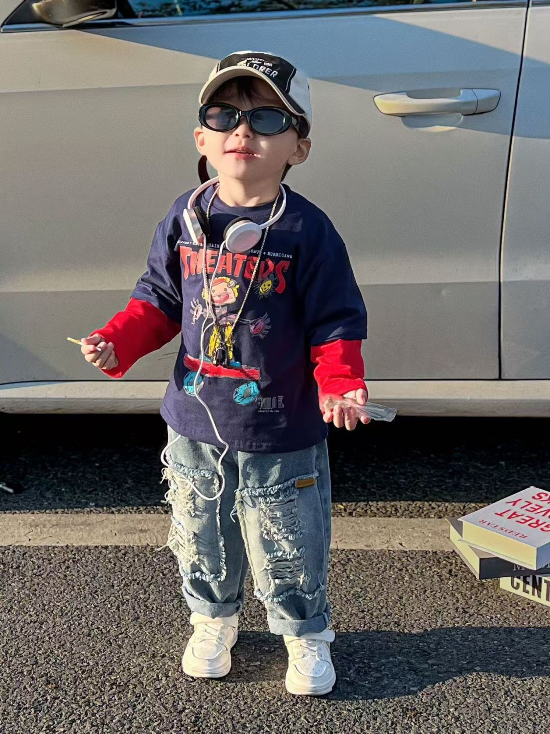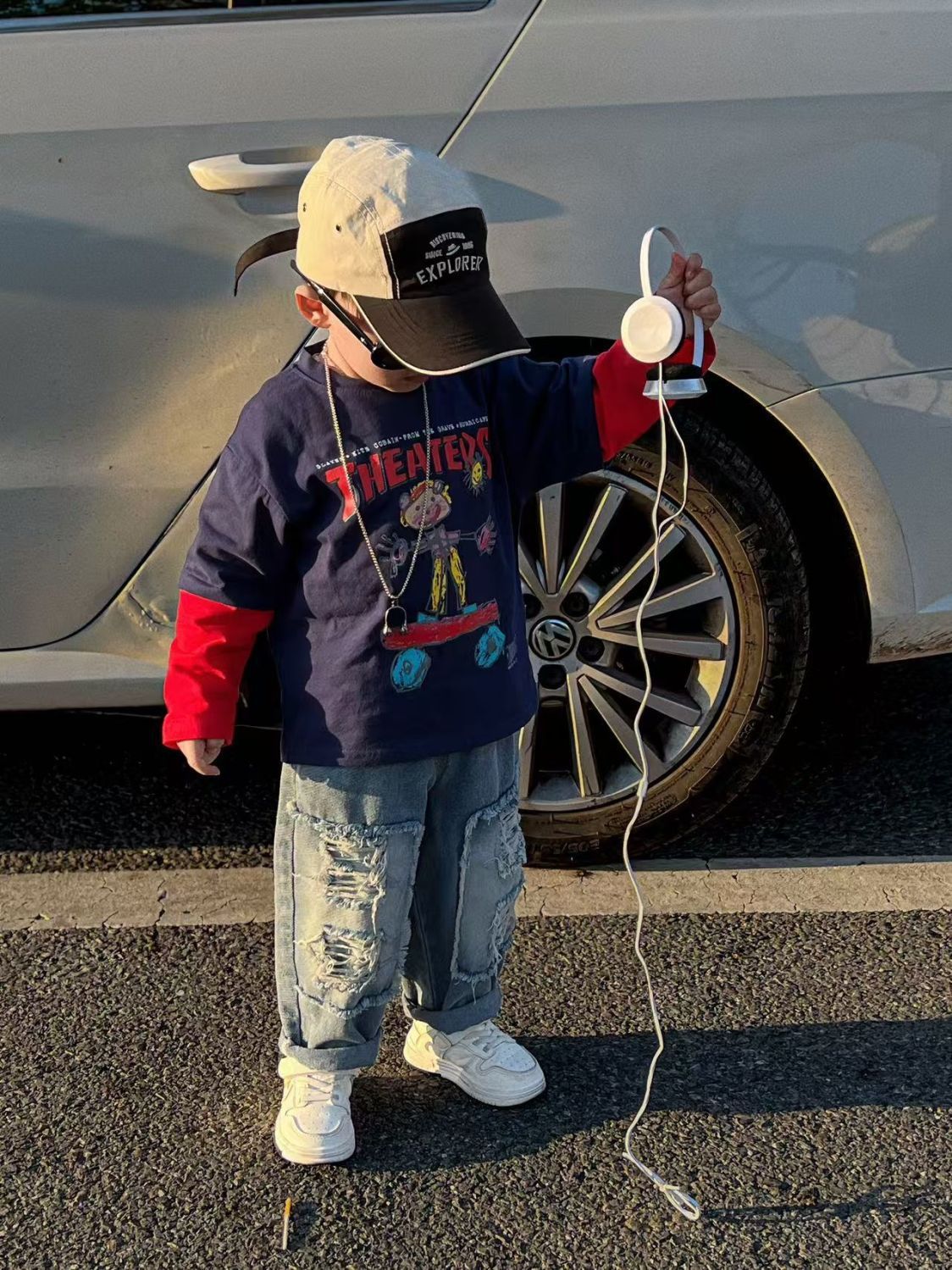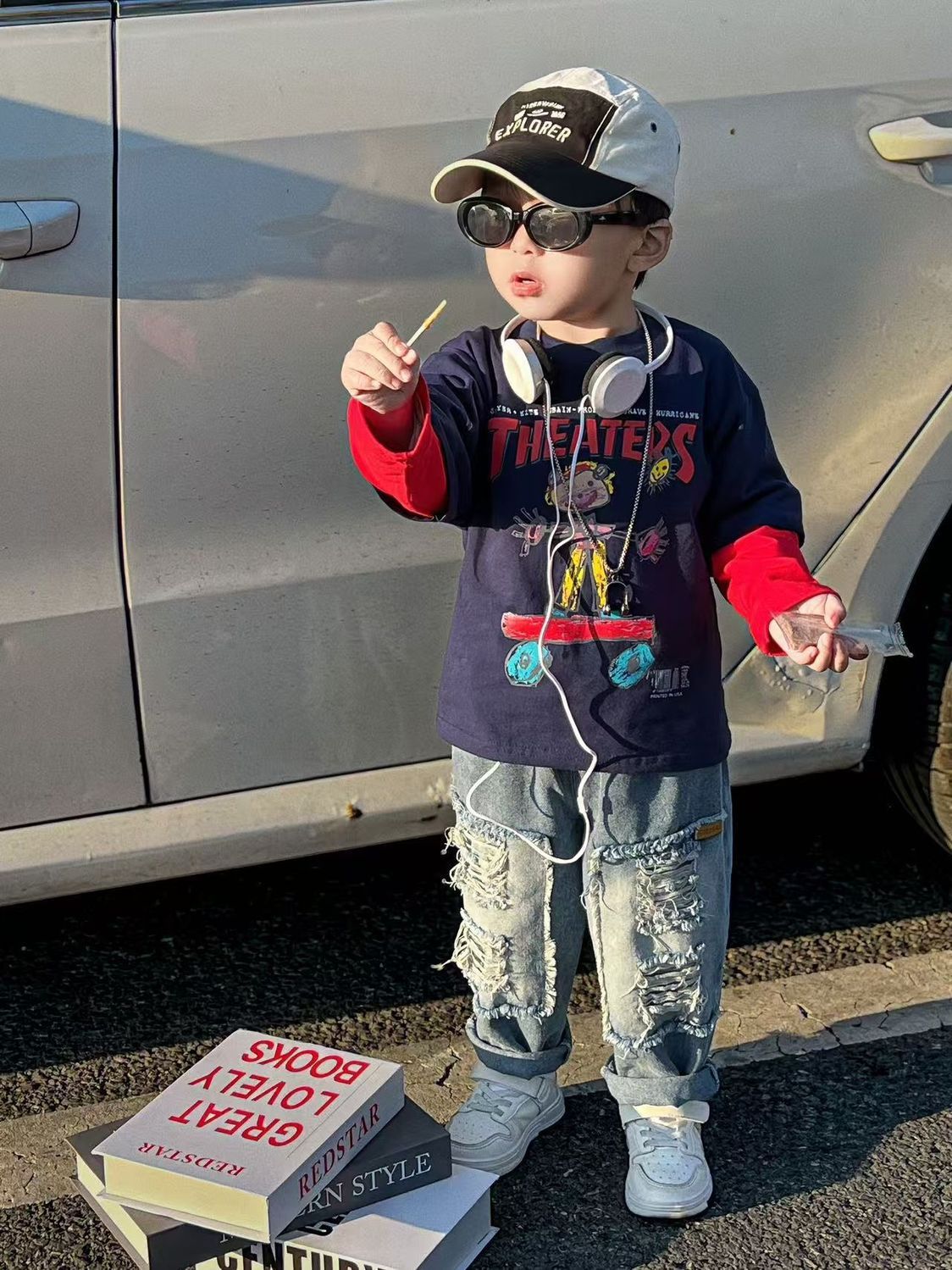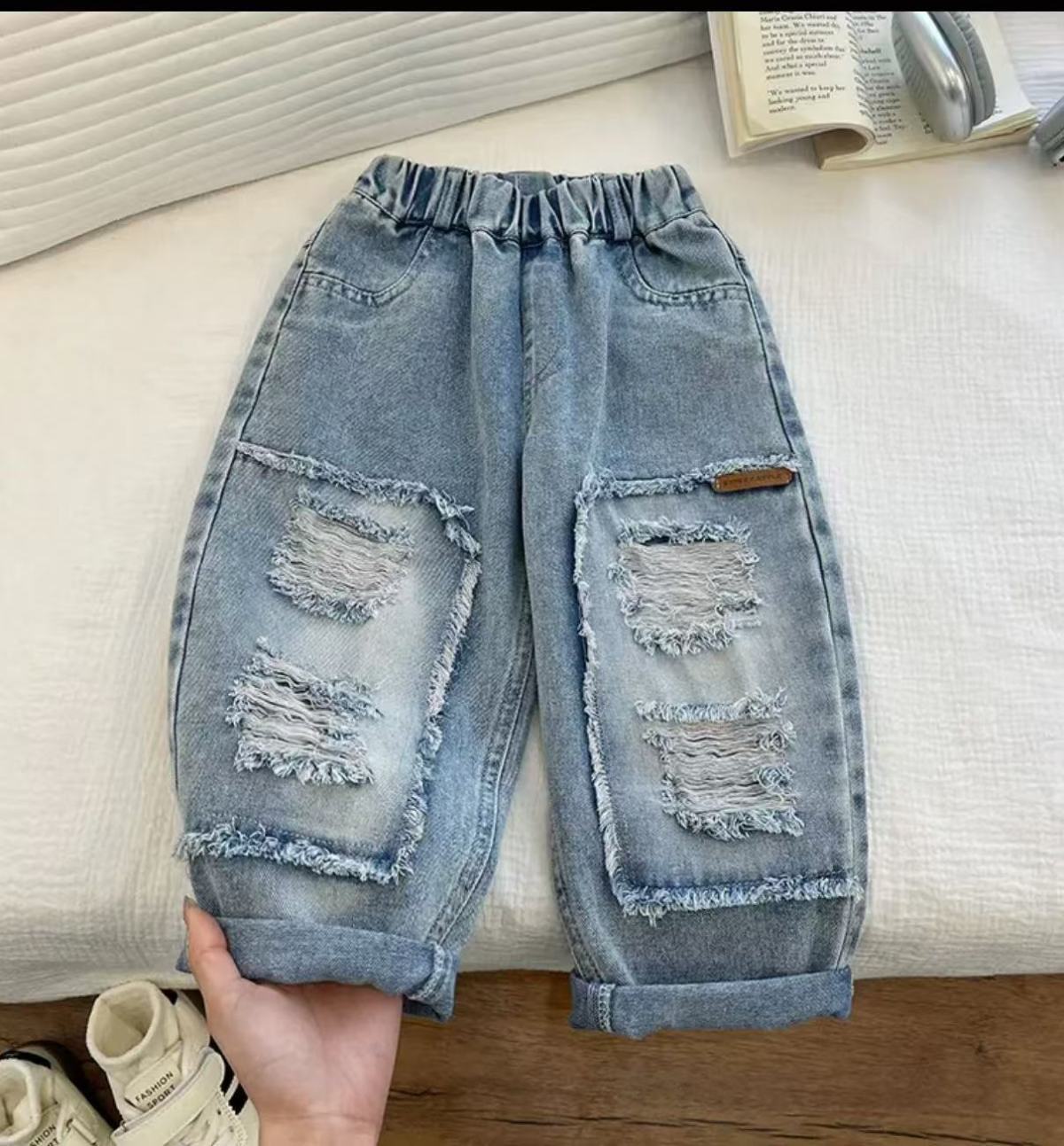 남아용 데미지 봄가을 청바지 2025 신상 아동 한국 스타일 캐주얼 패션 트렌디 루즈핏 팬츠스토어 가기