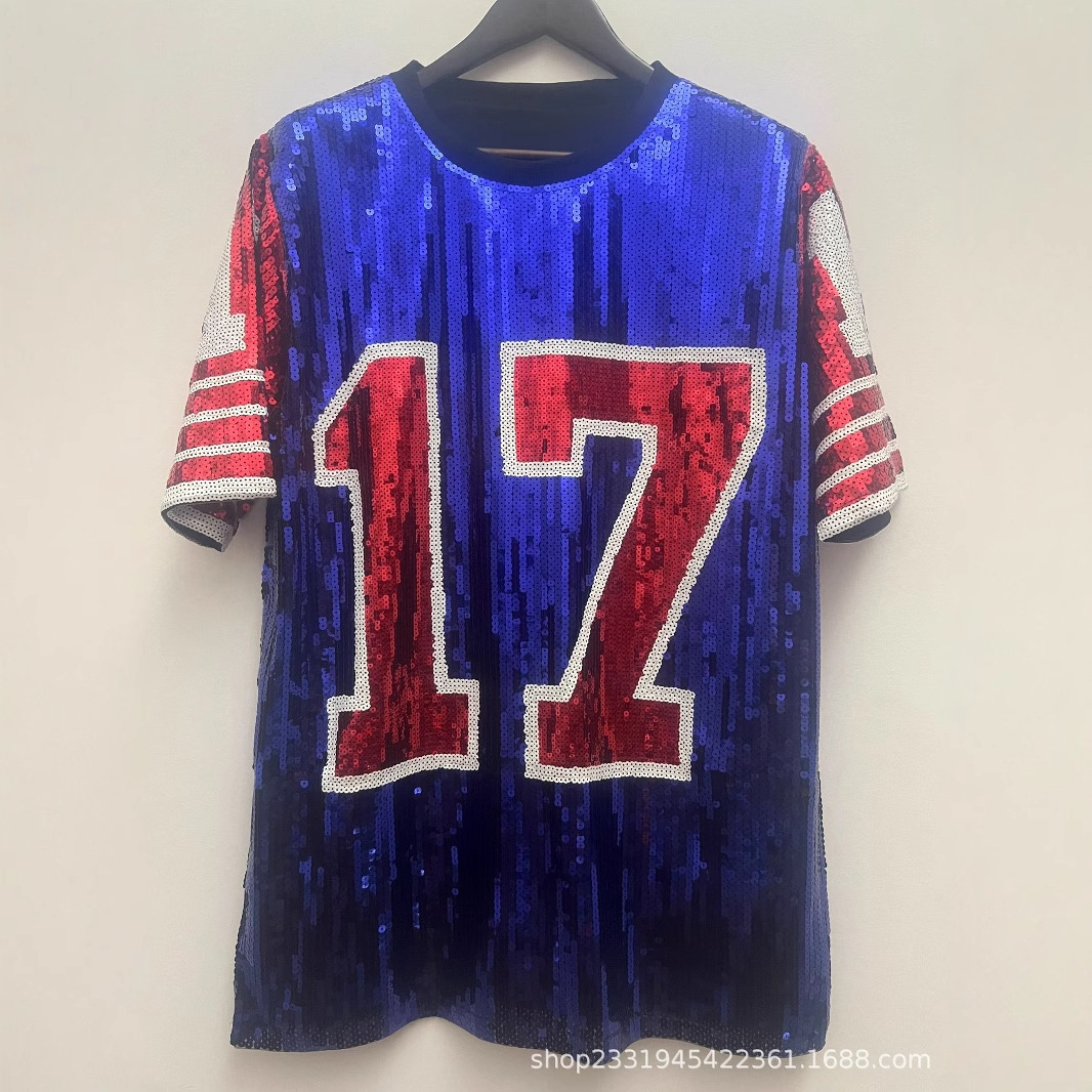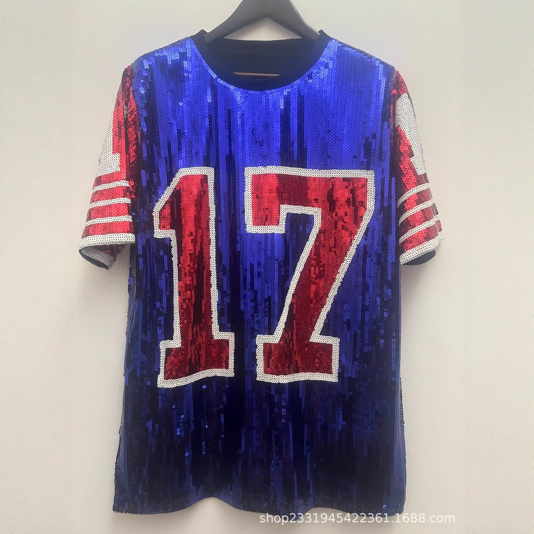 Amazon AliExpress 국경 간 공급 2025 여름 신작 17 디지털 루즈 반팔 티셔츠 탑 여성 의류