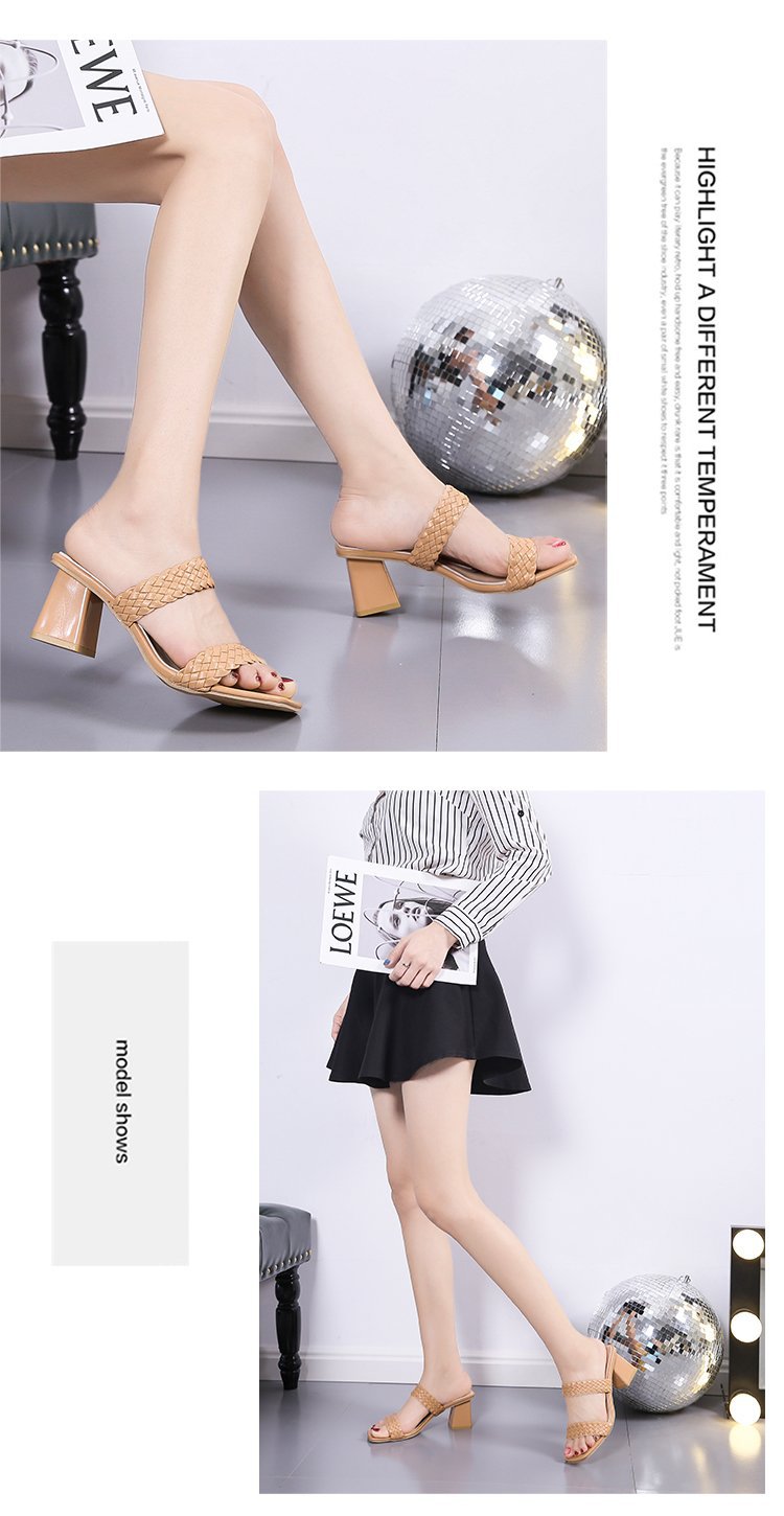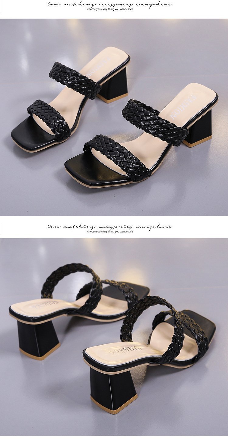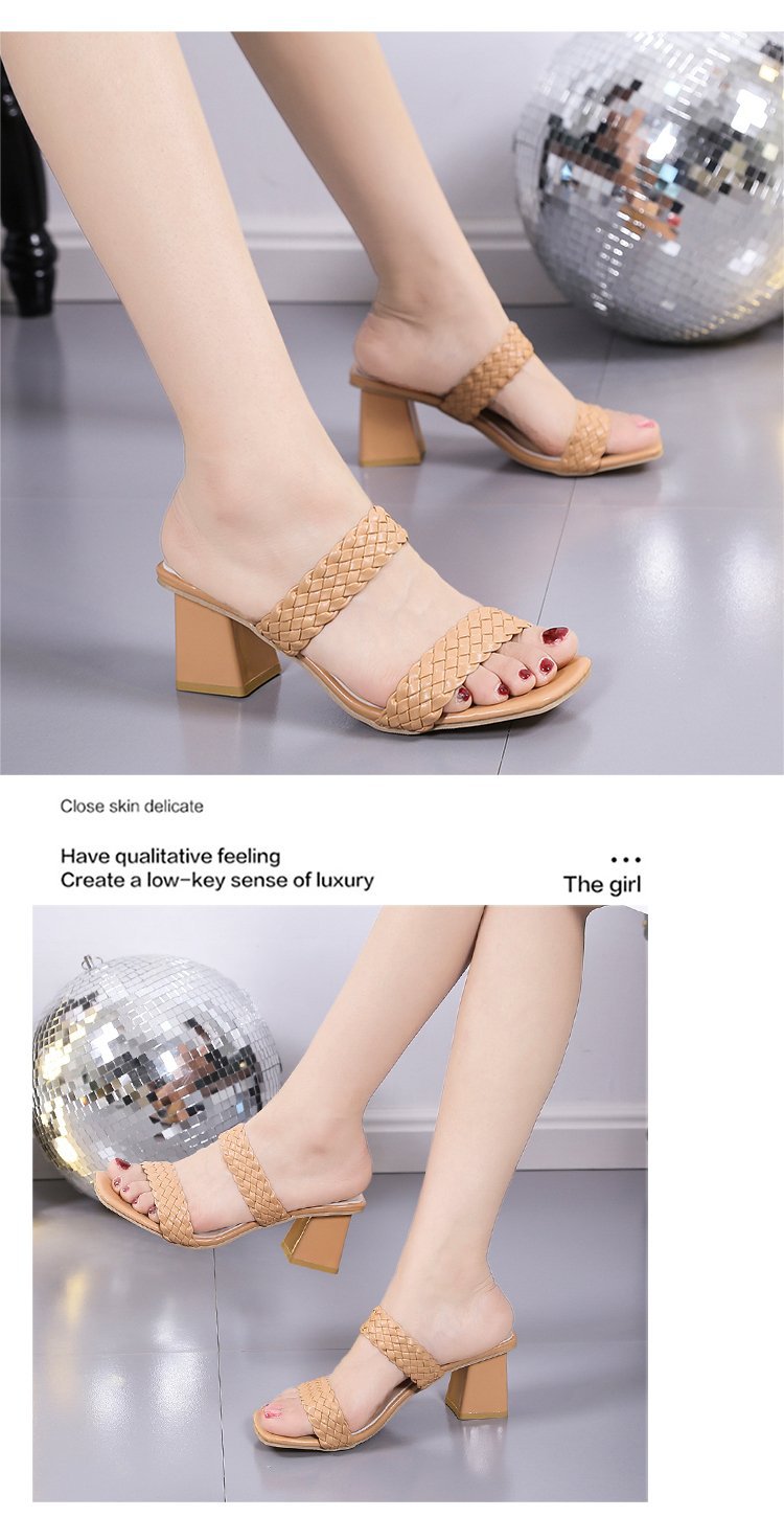 대외 무역 대형 여성 신발 2025 여름 새로운 패션 하이힐 샌들 스퀘어 토우 짠 스트랩 두꺼운 굽 비치 샌들스토어 가기