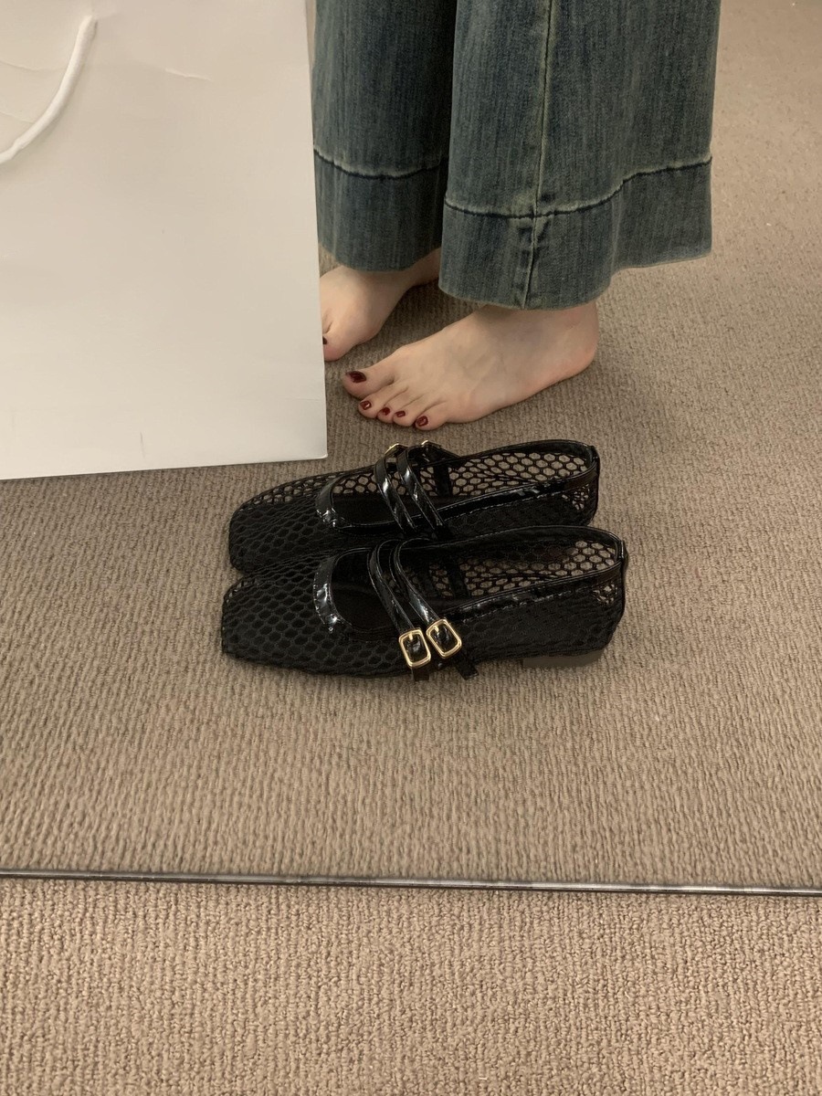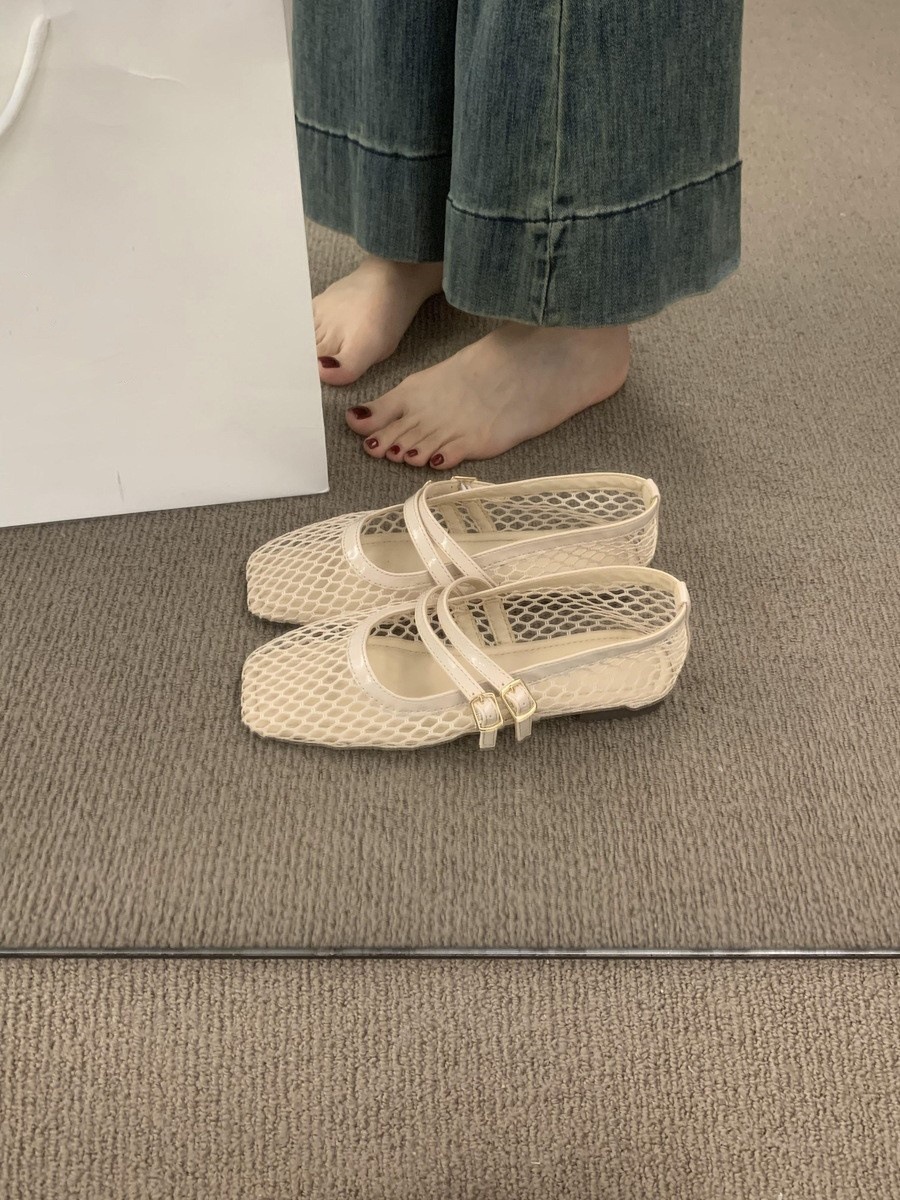 프랑스 스타일 플랫 속이 빈 통기성 Fishnet 신발 2025 여름 새로운 메쉬 메리 제인 신발 여성용 발레 신발스토어 가기