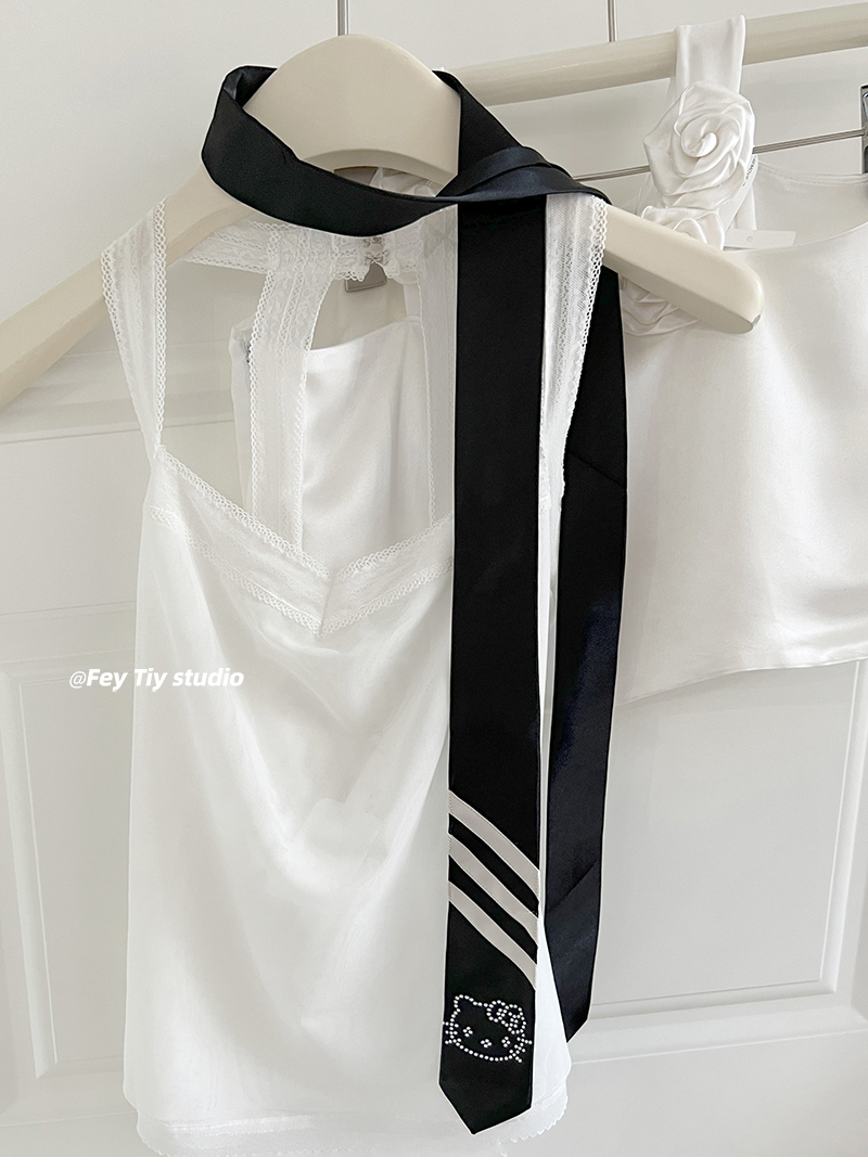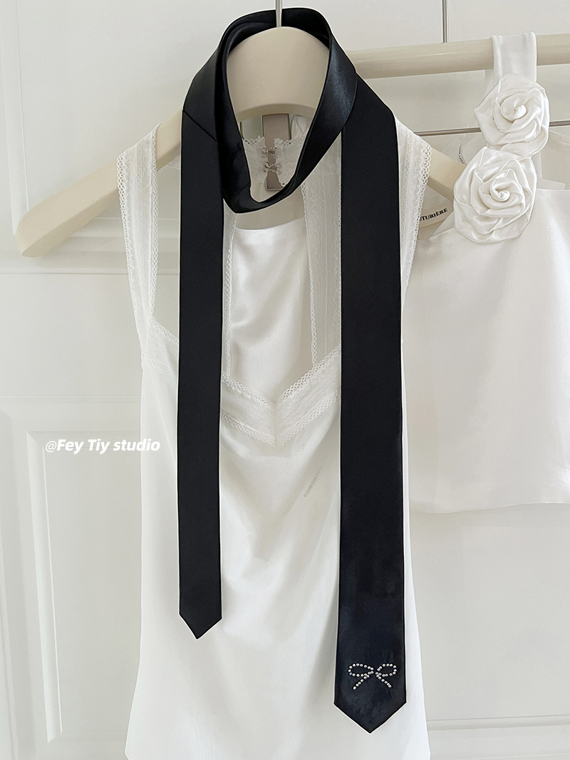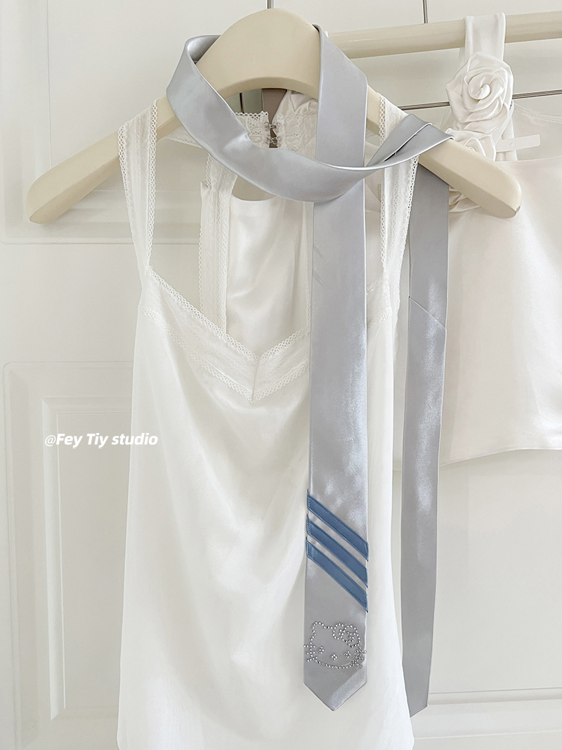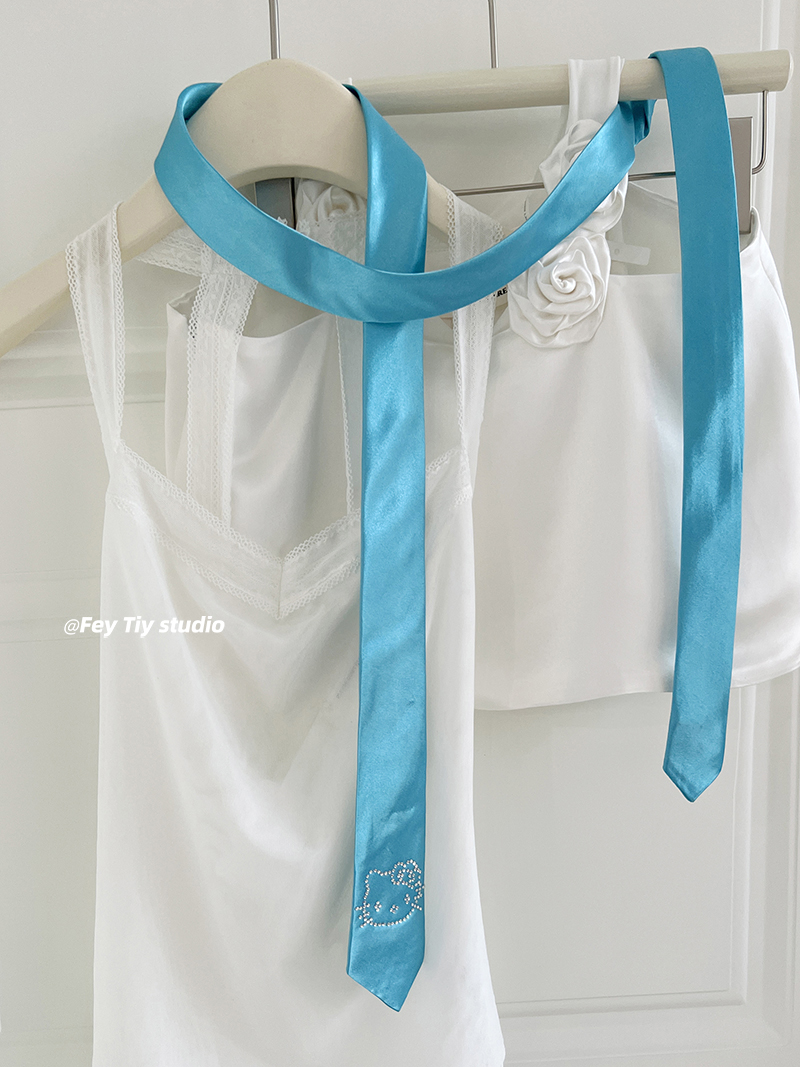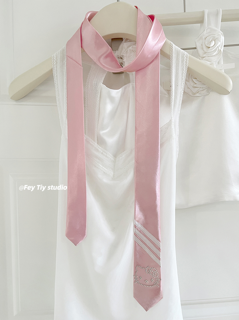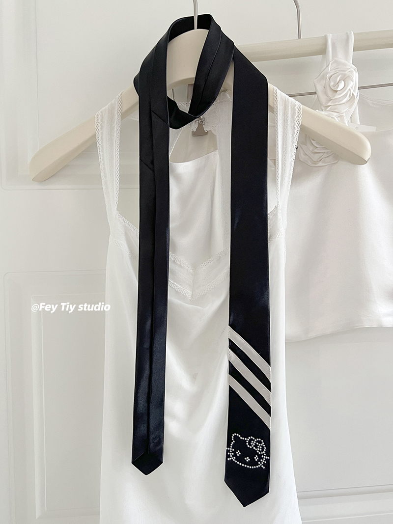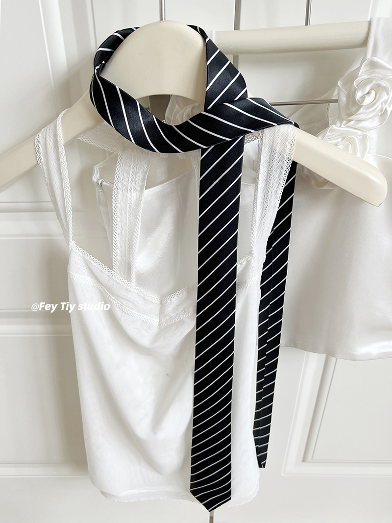 feytiy 세련된 학생 넥타이 맞춤형 스택 벨트 복고풍 y2k 핫 소녀 좁은 긴 실크 스카프 대학스토어 가기