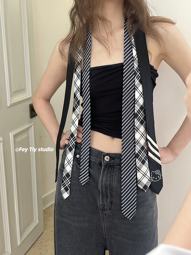 feytiy 세련된 학생 넥타이 맞춤형 스택 벨트 복고풍 y2k 핫 소녀 좁은 긴 실크 스카프 대학