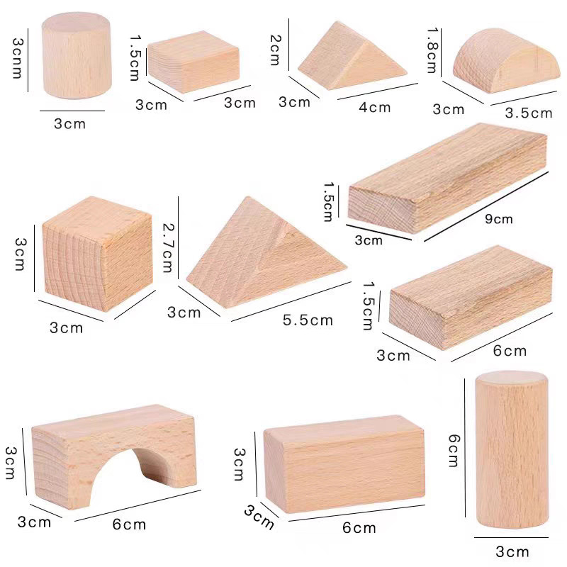 맞춤형 단단한 나무 기하학적 빌딩 블록 페인트가 없는 단일 블록 대량 너도밤 나무 큐브 직육면체 원통형 교육 보조 유치원