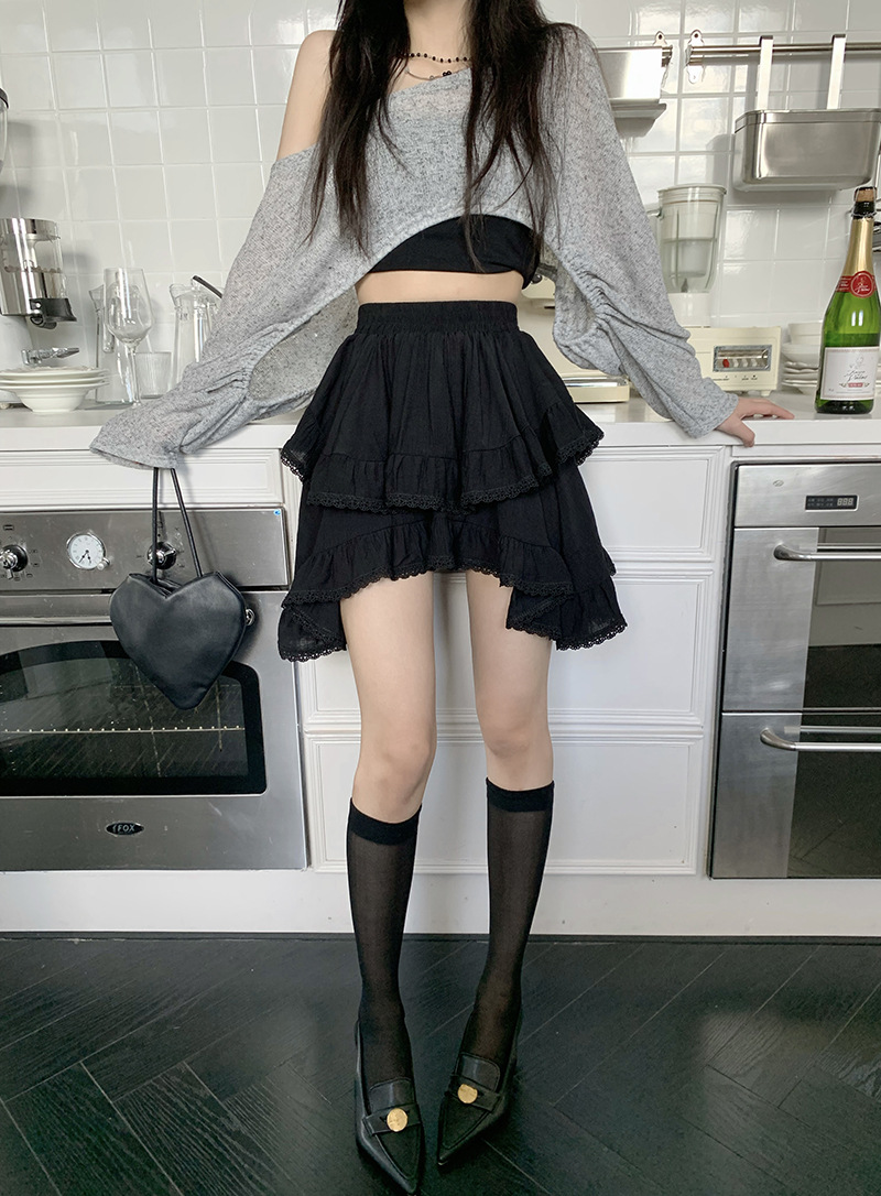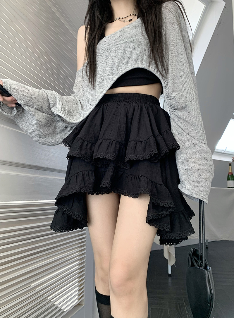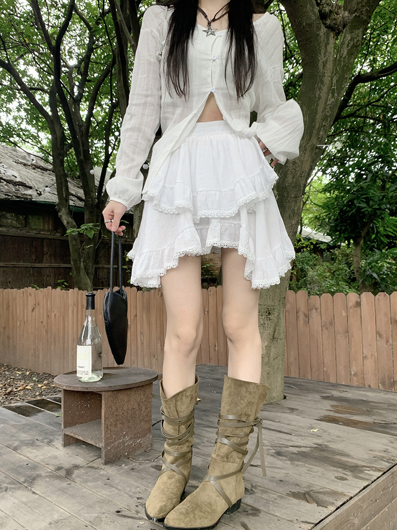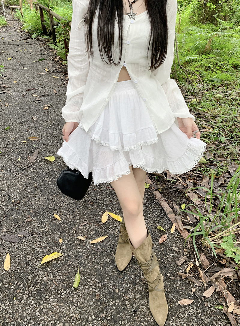 여성을위한 레이스 스플 라이스 프릴 스커트 이른 봄 하이 웨이스트 슬리밍 작은 신선한 불규칙한 흰색 케이크 짧은 스커트