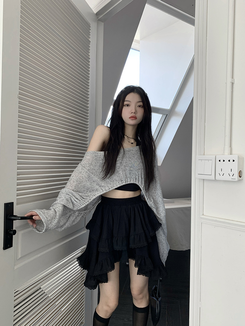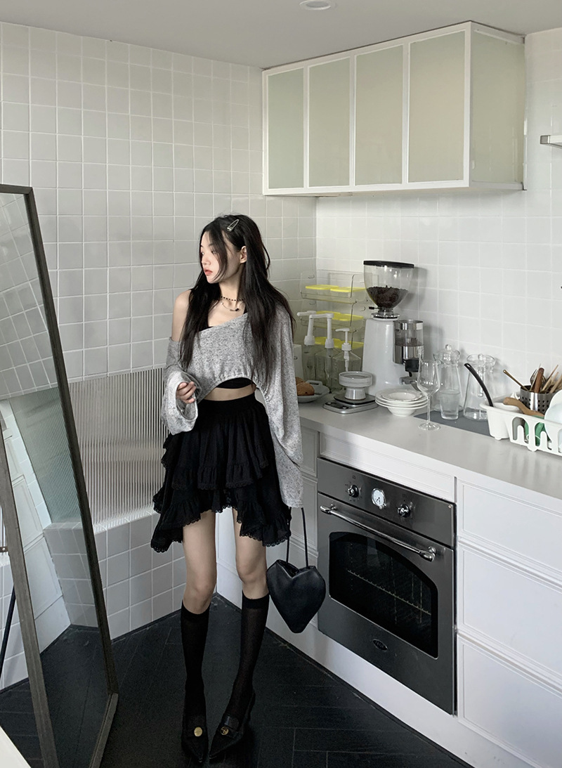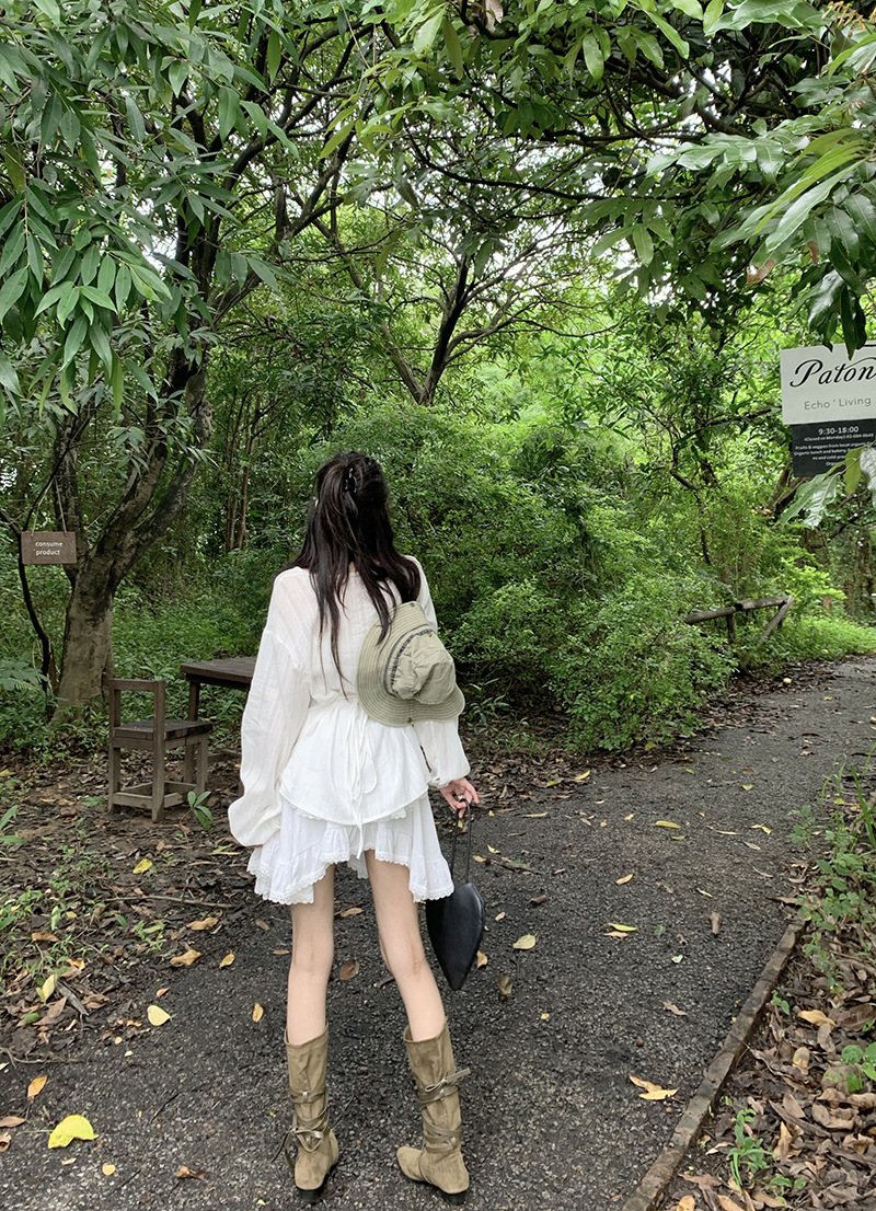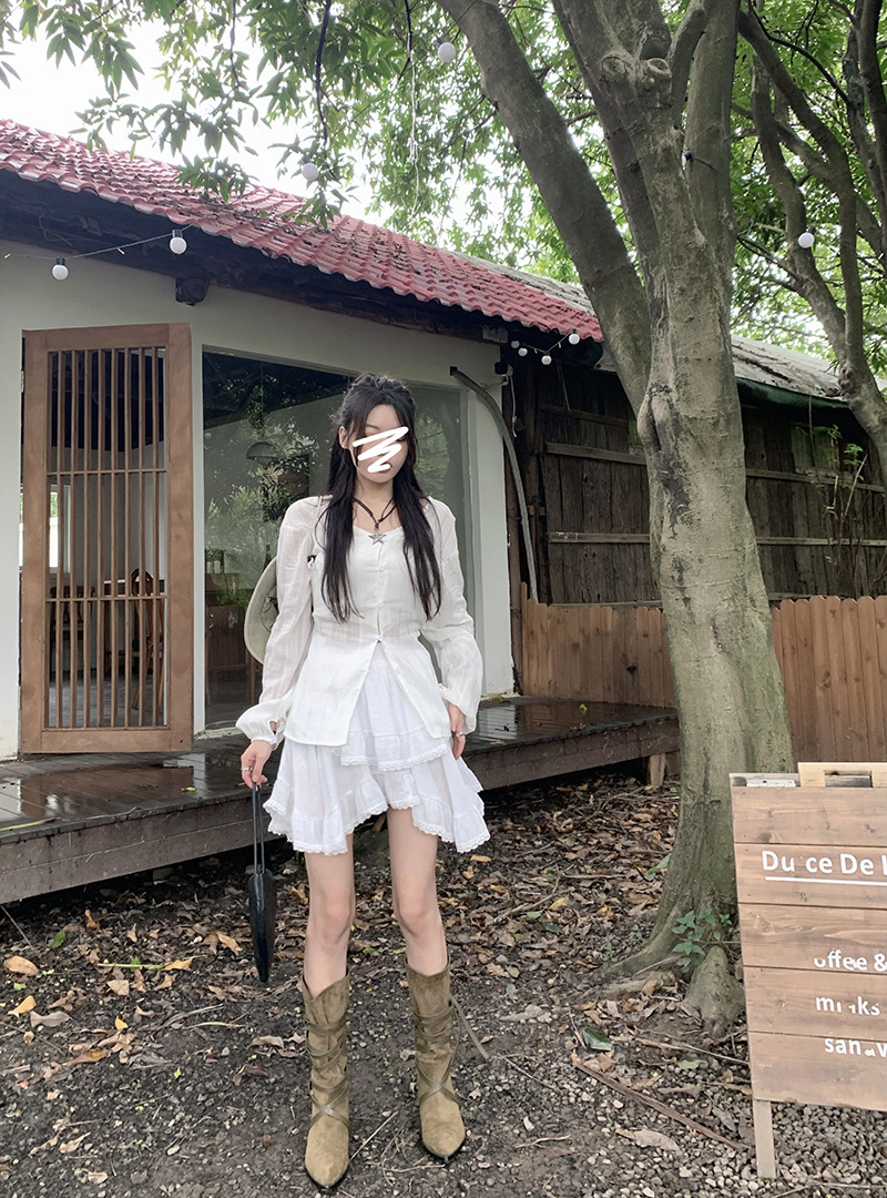 여성을위한 레이스 스플 라이스 프릴 스커트 이른 봄 하이 웨이스트 슬리밍 작은 신선한 불규칙한 흰색 케이크 짧은 스커트
