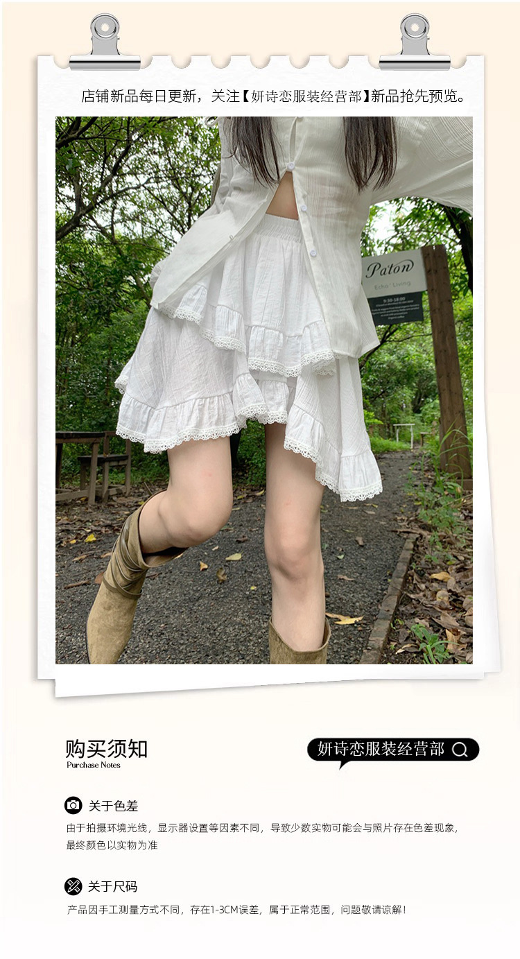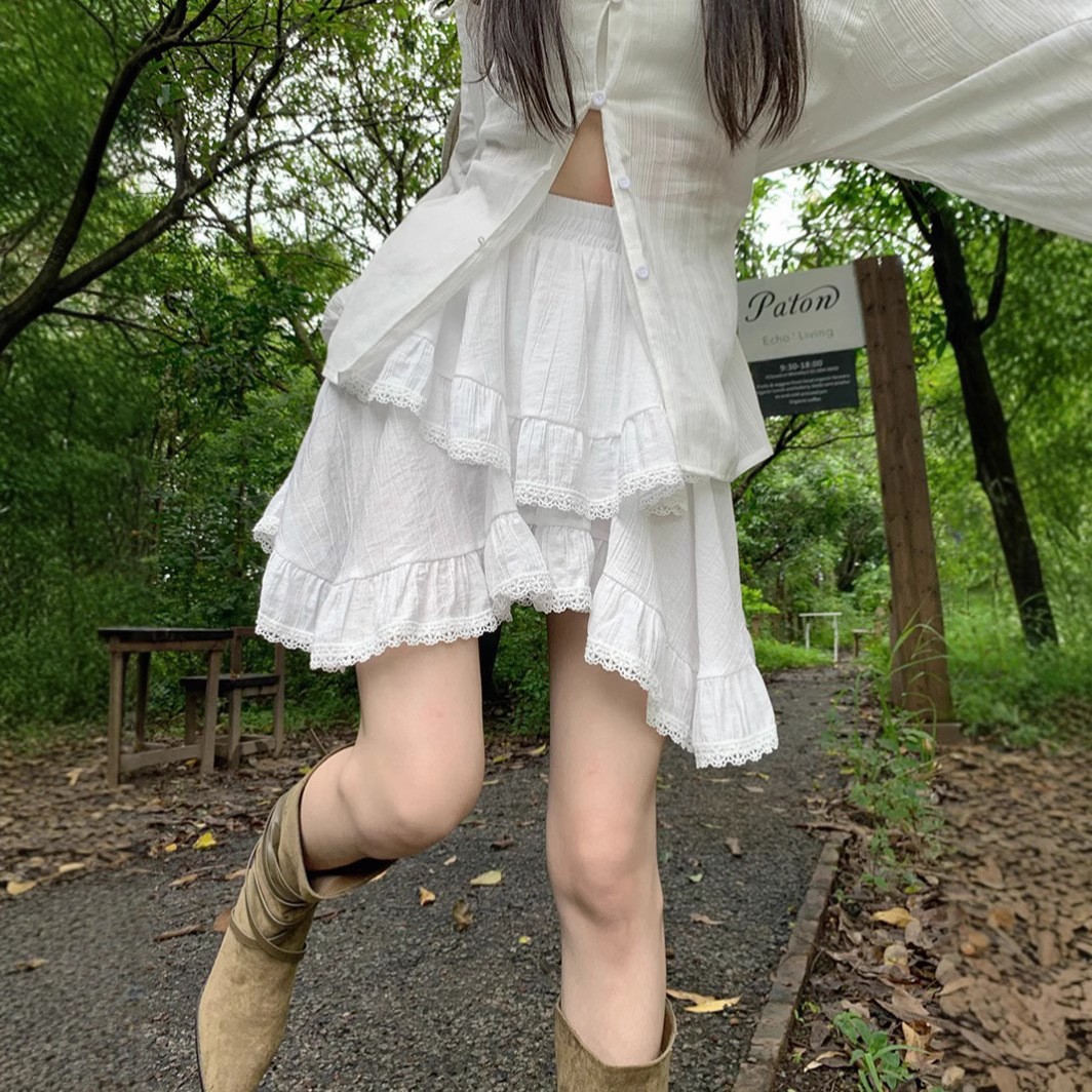 여성을위한 레이스 스플 라이스 프릴 스커트 이른 봄 하이 웨이스트 슬리밍 작은 신선한 불규칙한 흰색 케이크 짧은 스커트스토어 가기