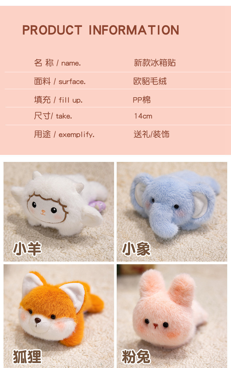 만화 봉제 인형 냉장고 자석 재미있는 자기 동물 인형 문화 및 창의적인 여행 주변 선물