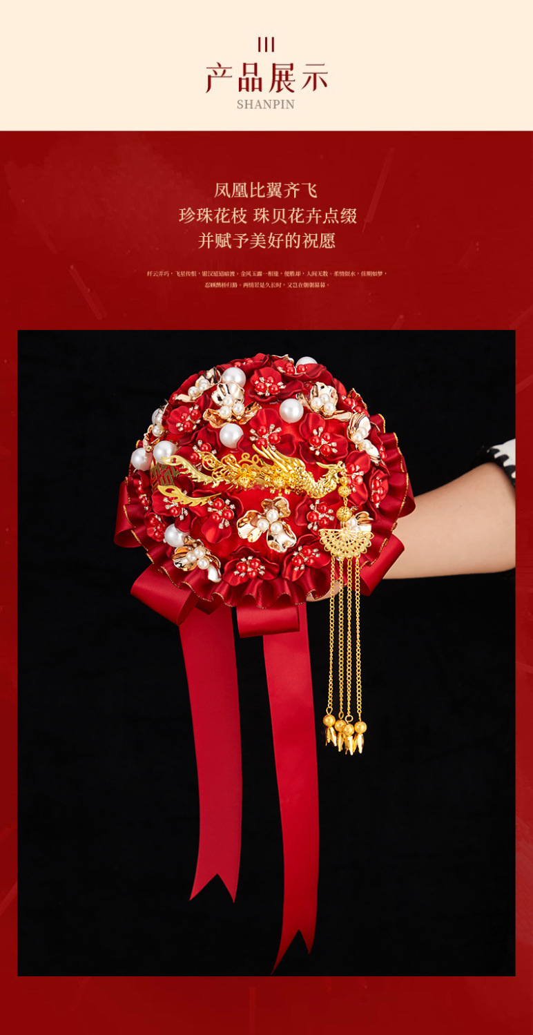 신랑이 들고 다니는 꽃다발, 중국식 신부 꽃다발, 고급 모조 장미 꽃다발, 샤오허 의상과 핫 스타일
