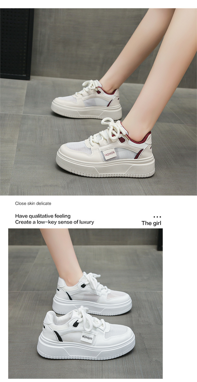 여성을위한 메쉬 통기성 흰색 신발 2025 봄과 여름 새로운 인기 캐주얼 스포츠 신발 두꺼운 밑창 얇은 메쉬 신발스토어 가기