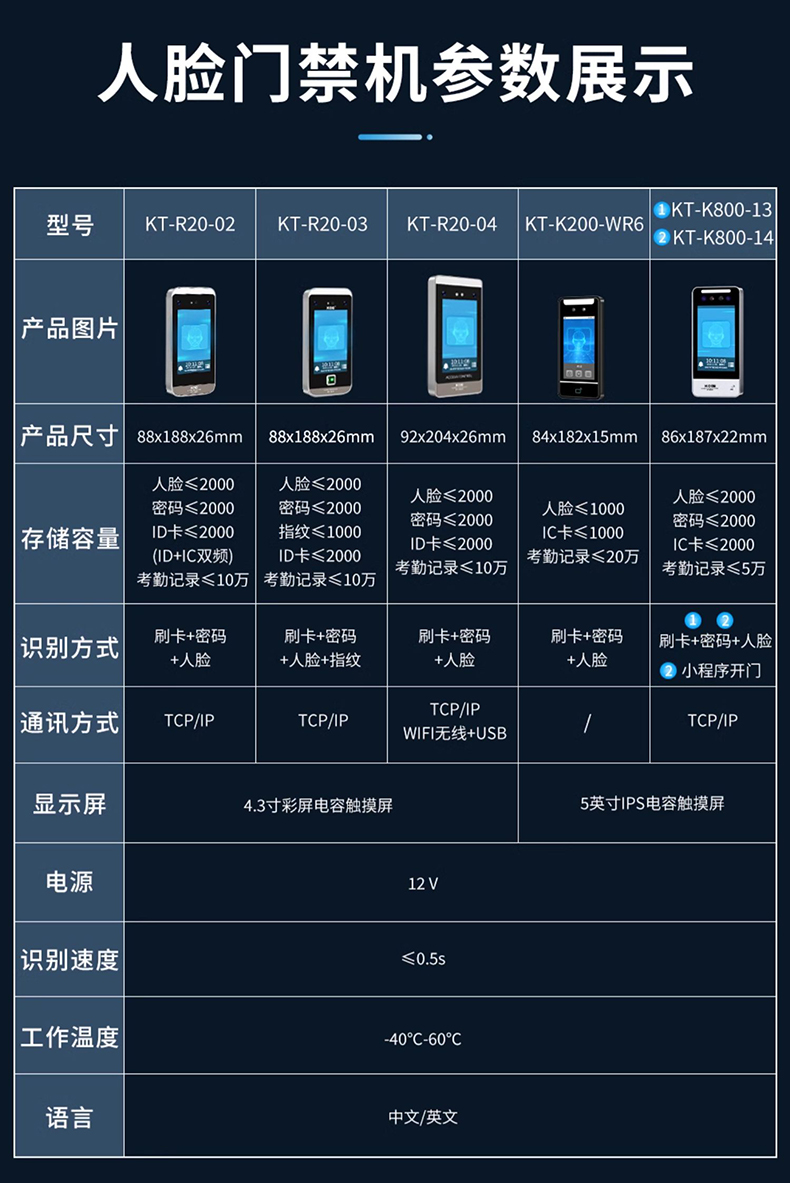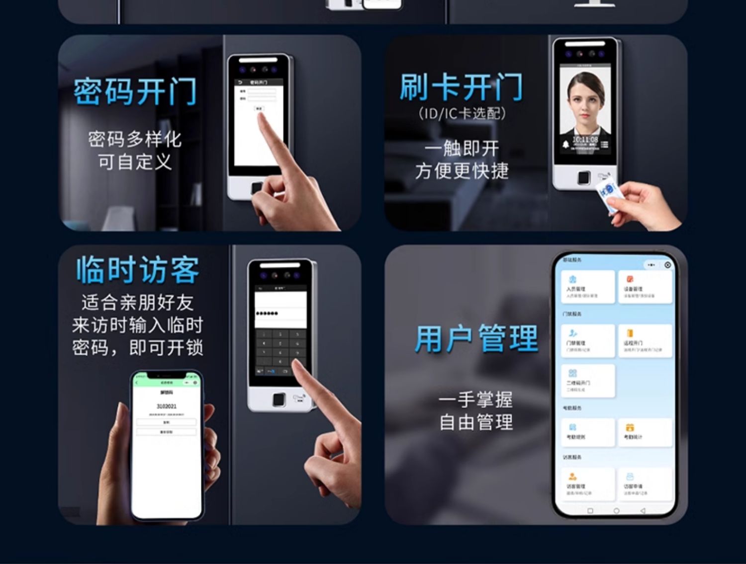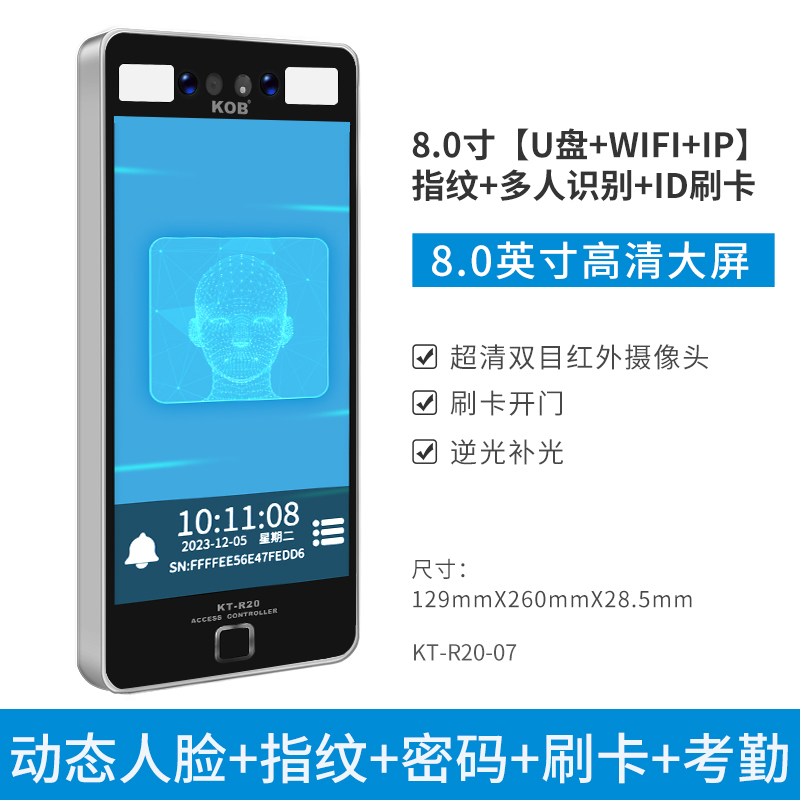 • 8.0inch [동적 얼굴 지문 모델] ID 카드 + 비밀번호 + 출석 + IP + WIFI + 다자간 식별