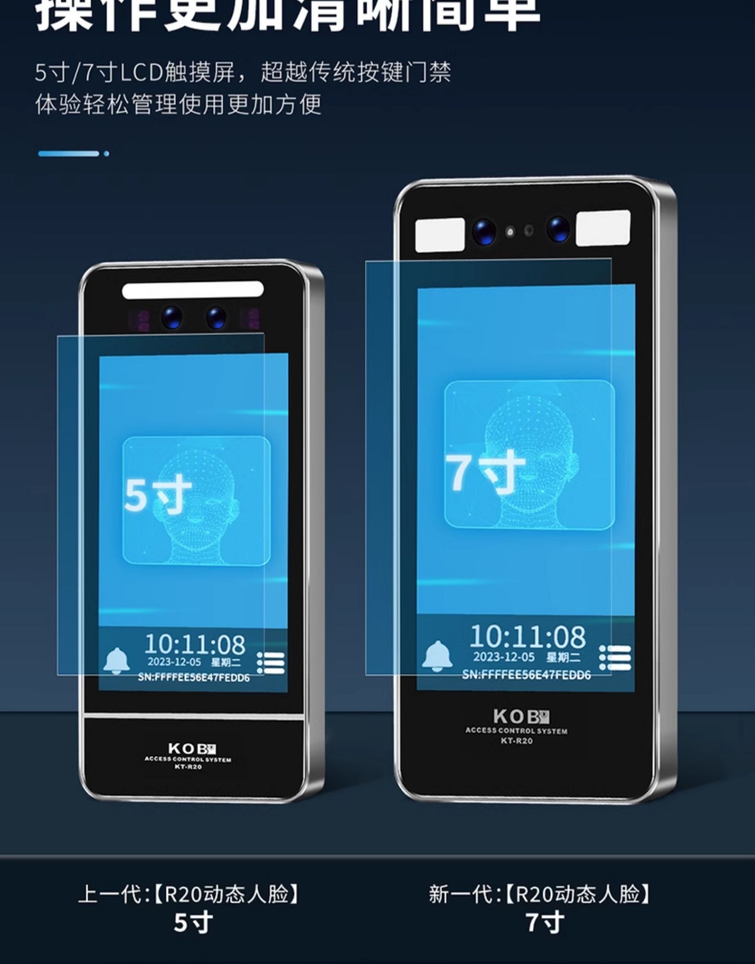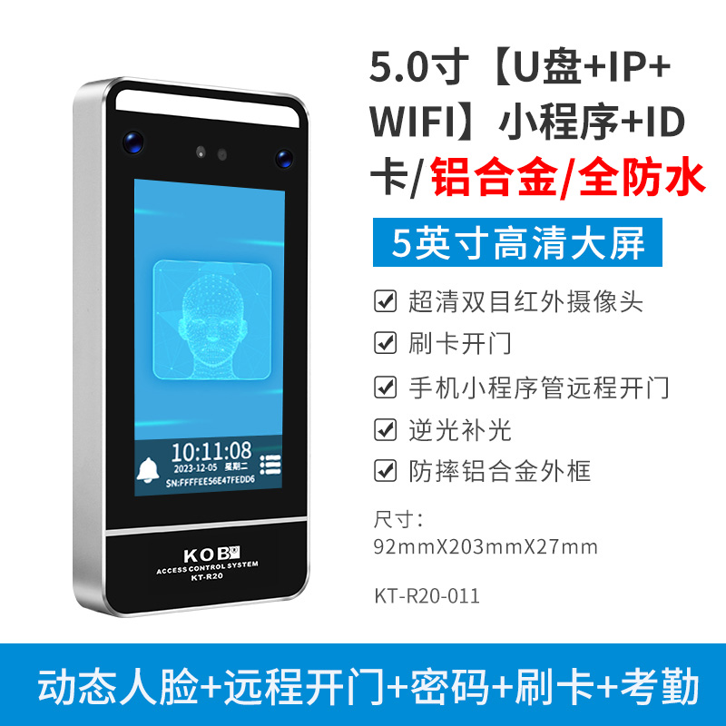KOB 동적 얼굴 인식 출입 통제 시스템 올인원 방수 얼굴 인식 출입 통제 및 출석 기계