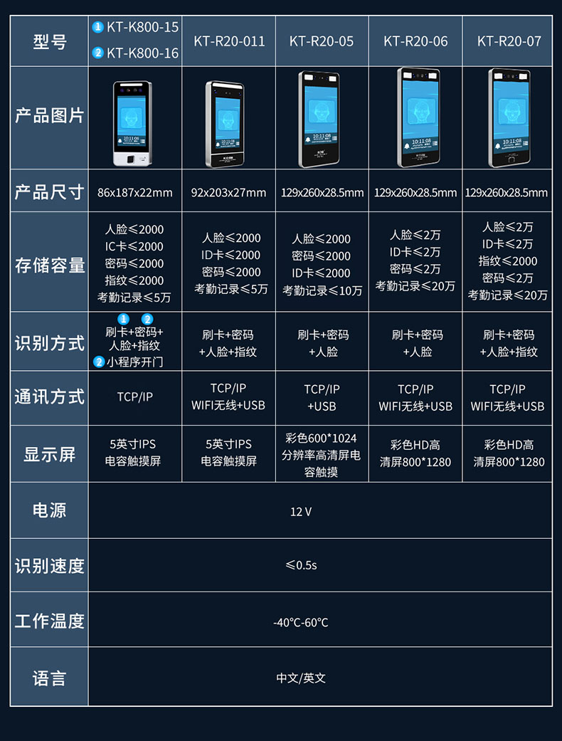 • 5.0inch [동적 얼굴 스와이프 모델] ID/IC 스와이프 + 비밀번호 + 출석 + IP + 애플릿