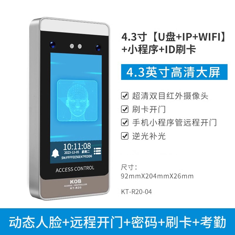 • 4.3inch [다이나믹 페이스 카드 스와이프 모델] ID/IC 카드 스와이프 + 비밀번호 + 출석 + IP + 블랙