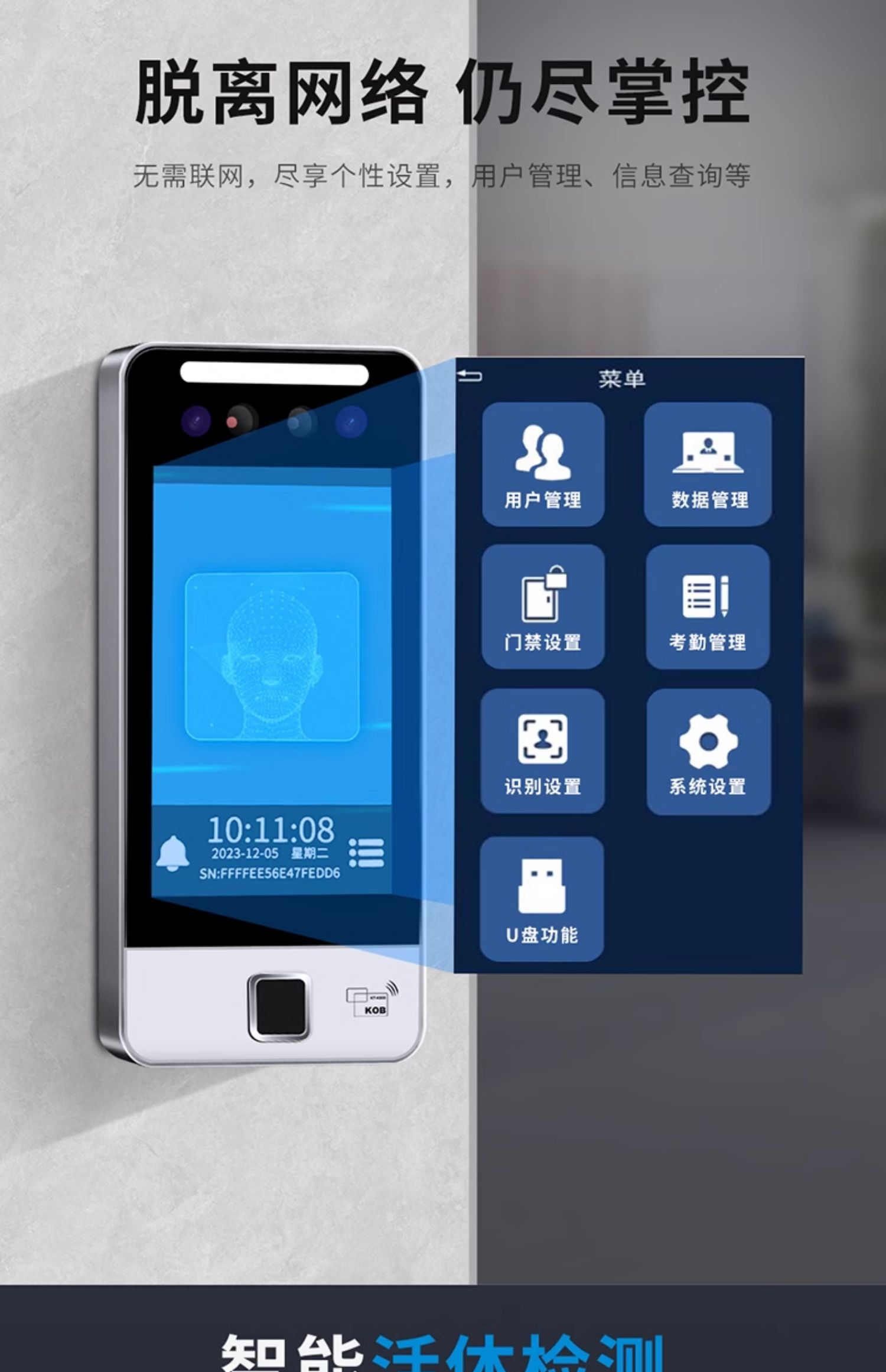 KOB 동적 얼굴 인식 출입 통제 시스템 올인원 방수 얼굴 인식 출입 통제 및 출석 기계스토어 가기