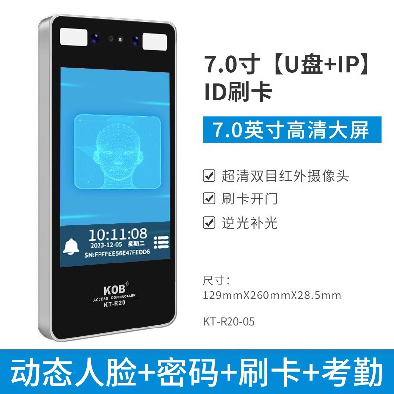 • 7.0inch [동적 얼굴 카드 긁기 모델] ID 카드 긁기 + 비밀번호 + 출석 + IP + 알루미늄 합금