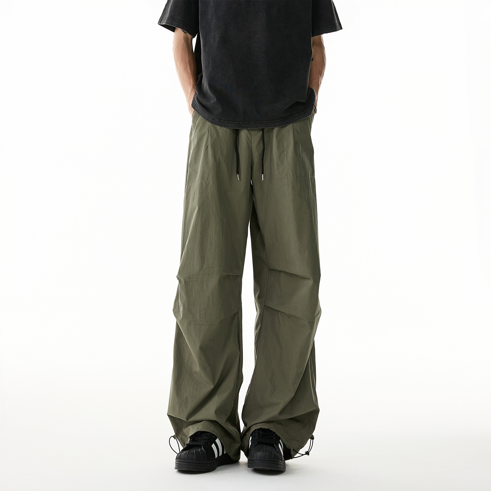 여름용 남성용 주름진 아이스 실크 낙하산 바지 얇은 야외 속건성 등산 바지 시원한 와이드 팬츠스토어 가기