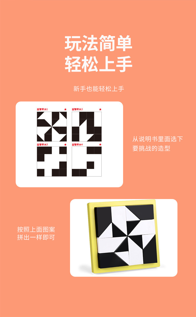 Huarongdao 재미있는 빌딩 블록 흑백 퍼즐 장난감 어린이 교육 사고 훈련 부모-자식 대화 형 데스크탑 게임스토어 가기