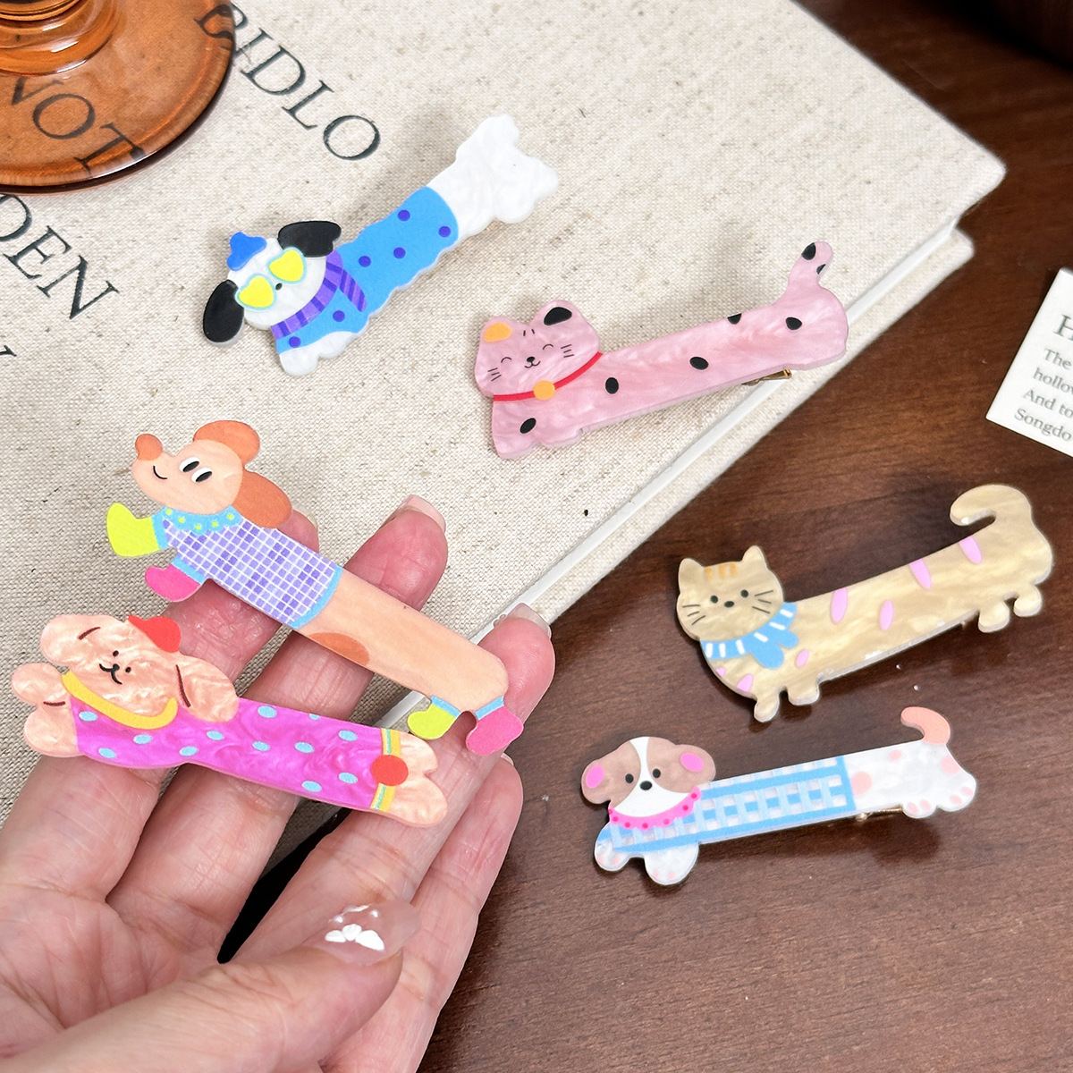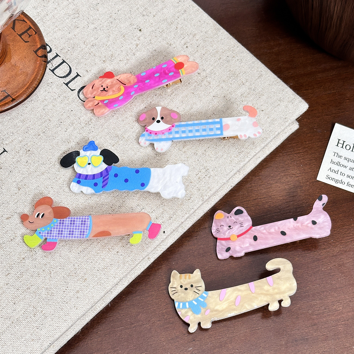 귀엽고 다채로운 레이저 긴 강아지 머리핀 소녀 하트 다용도 일본 및 한국 머리핀 학생 만화 머리 장식 소녀스토어 가기