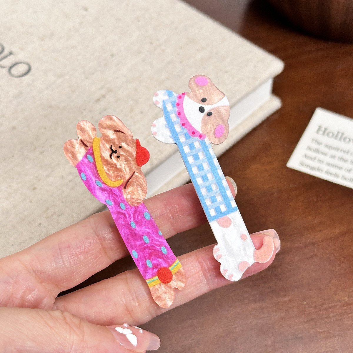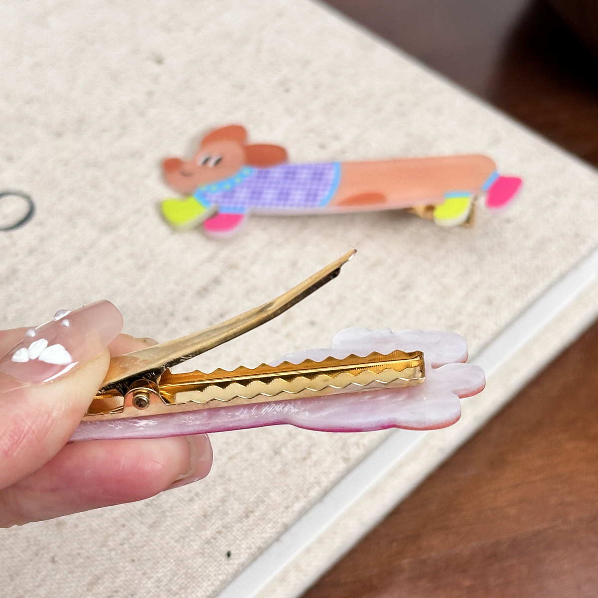 귀엽고 다채로운 레이저 긴 강아지 머리핀 소녀 하트 다용도 일본 및 한국 머리핀 학생 만화 머리 장식 소녀