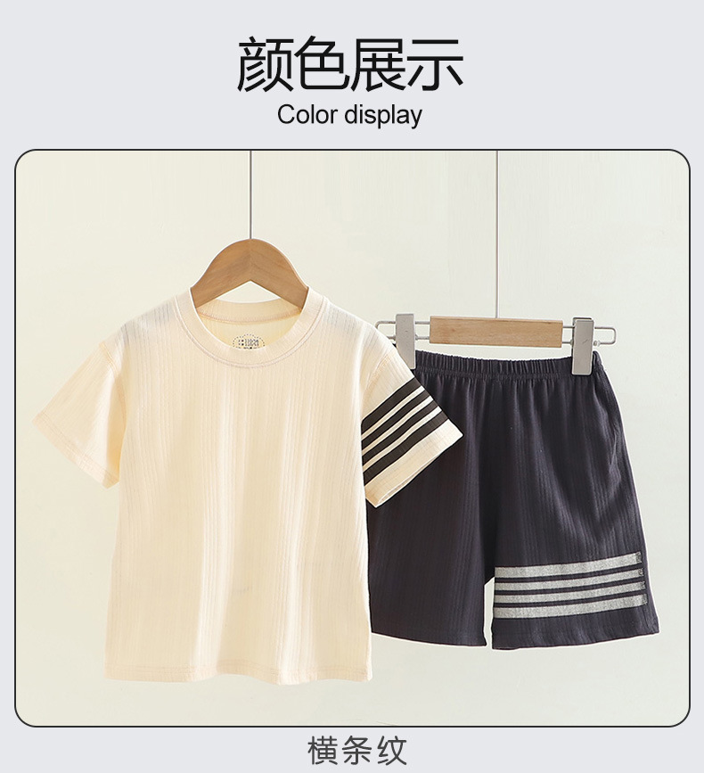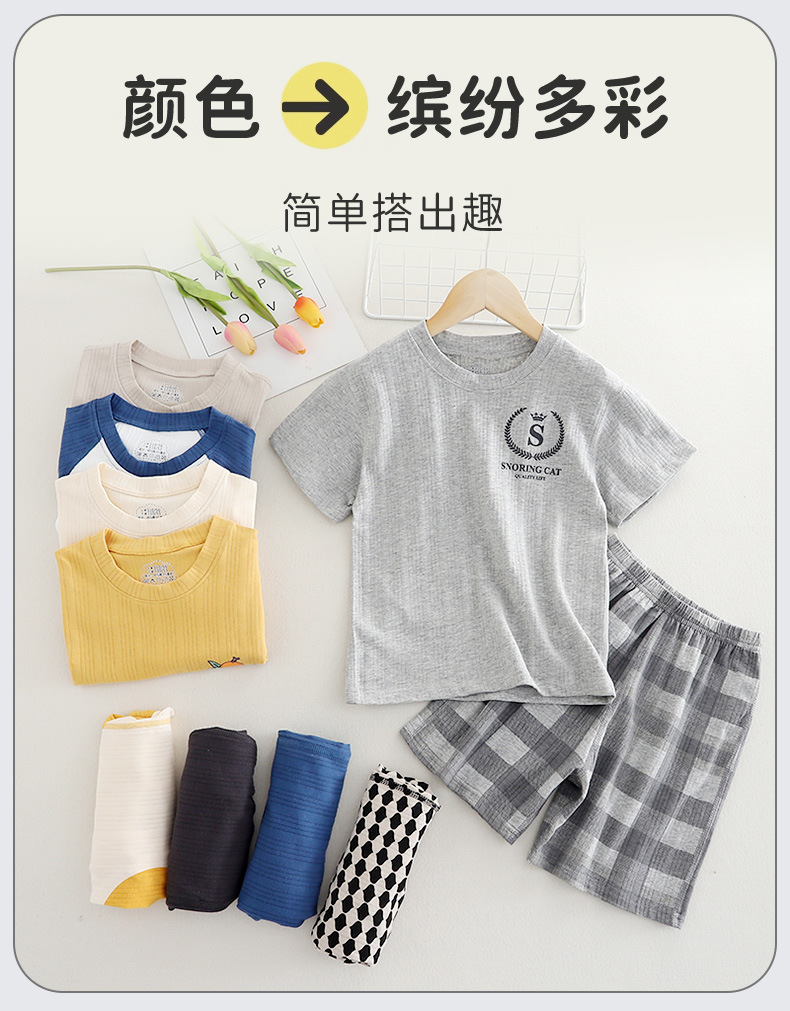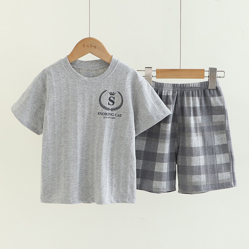 남아용 잠옷, 라이크라 면, 아동용 여름용 얇은 반팔 반바지 세트, 여아용 중대형 아동용 부모-자식복, 가정복스토어 가기