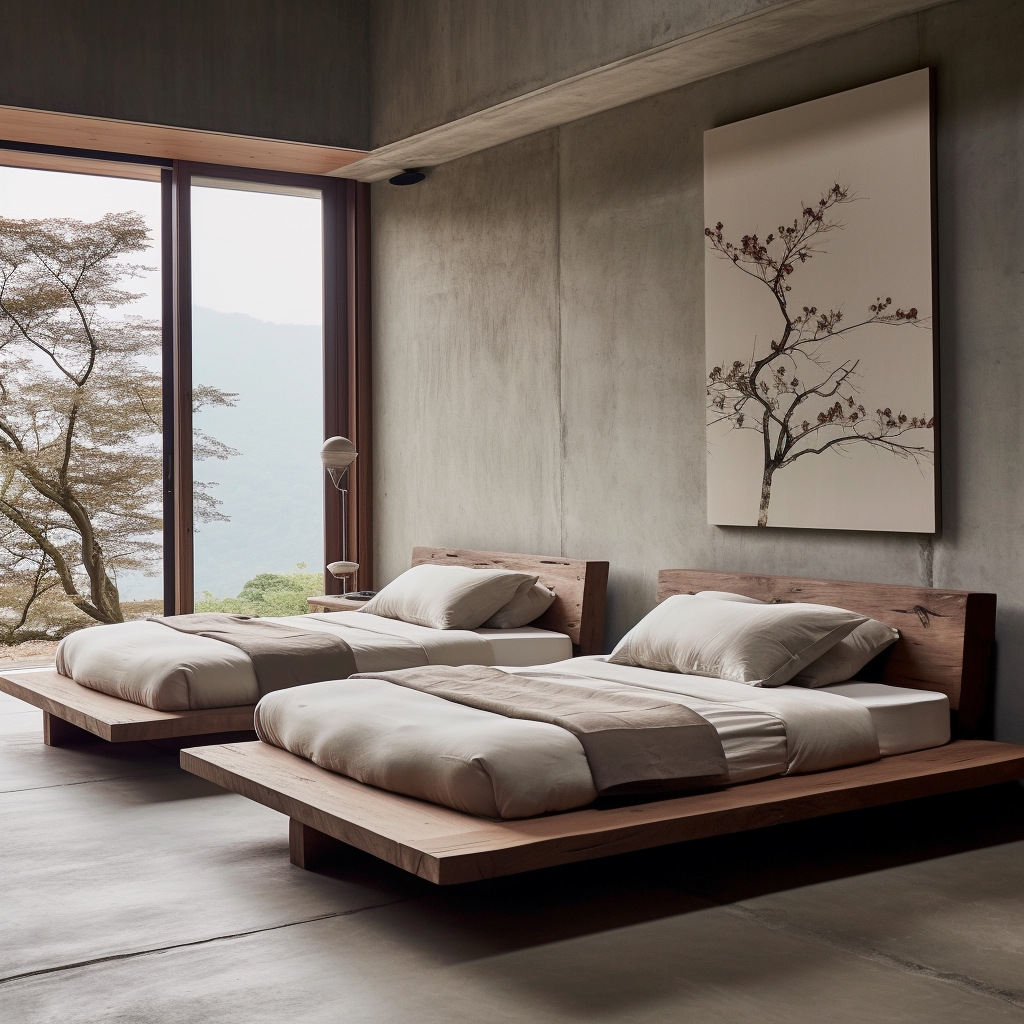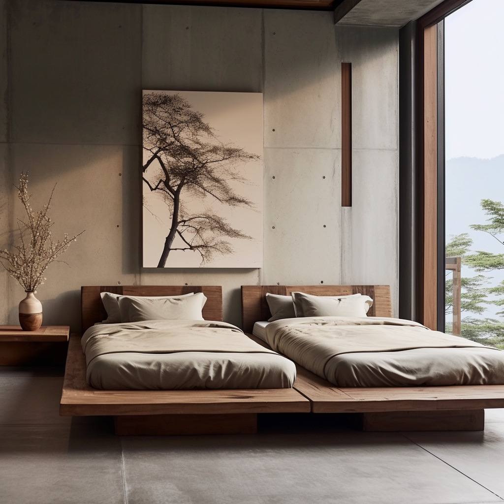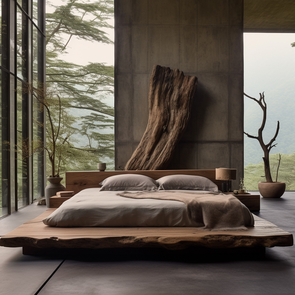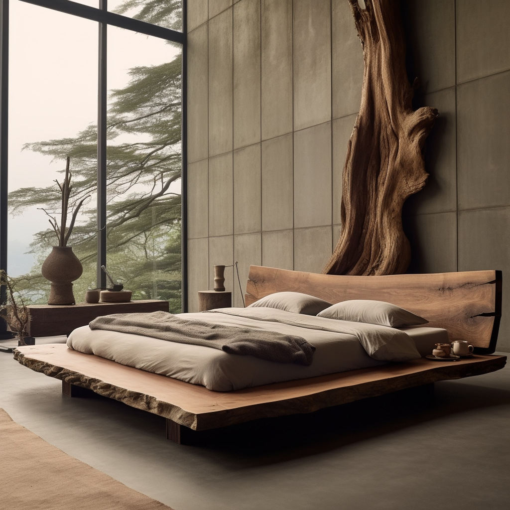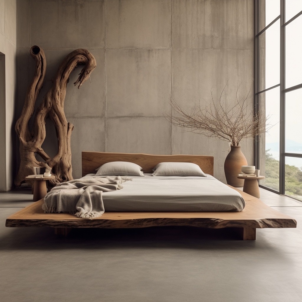 와비사비 스타일 원목 더블 침대 B&B 호텔 모델룸 디자이너 모델 원목색 중고 대형 침대 순수 원목스토어 가기