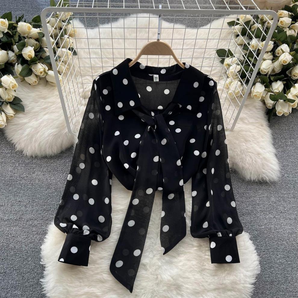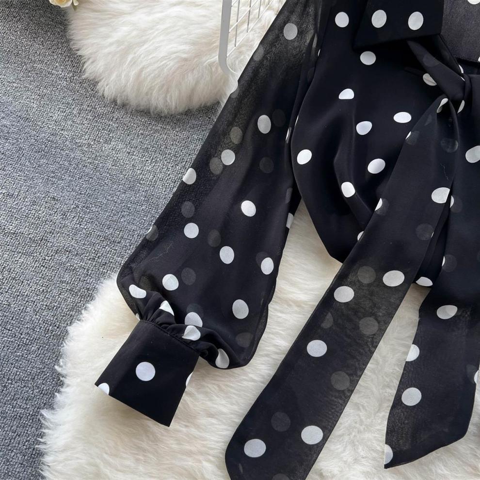 여성용 쉬폰 셔츠 2025 여름 새 스타일 달콤한 폴카 도트 스타일 퍼프 슬리브 연령 감소 여성용 다용도 바닥 셔츠 탑