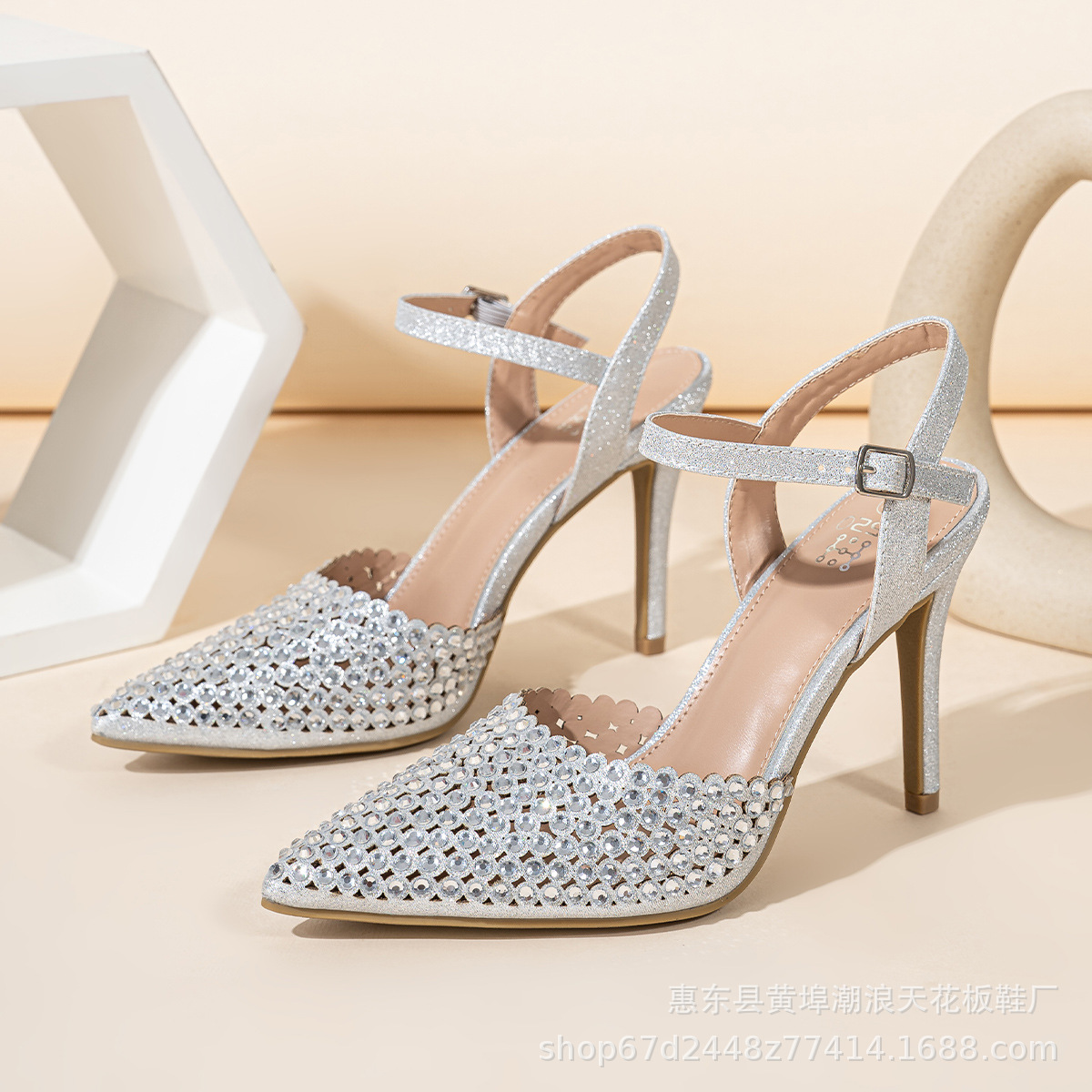 2025 여름 유럽과 미국의 글로벌 고급 여성 신발 하이힐 라인스톤 스틸레토 샌들 공장 도매로 국경 간으로 사용 가능스토어 가기