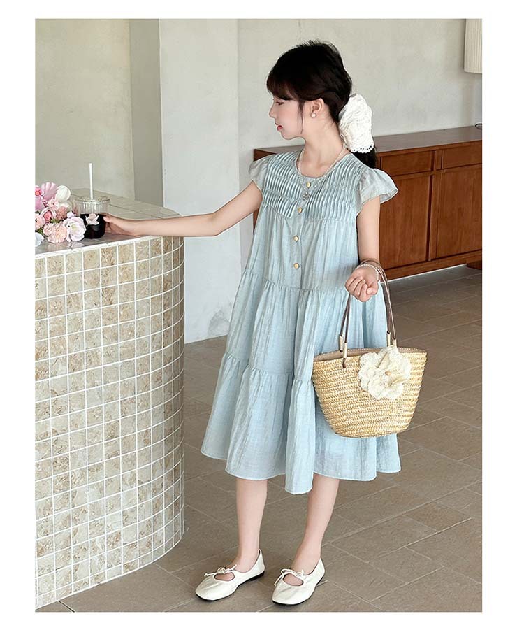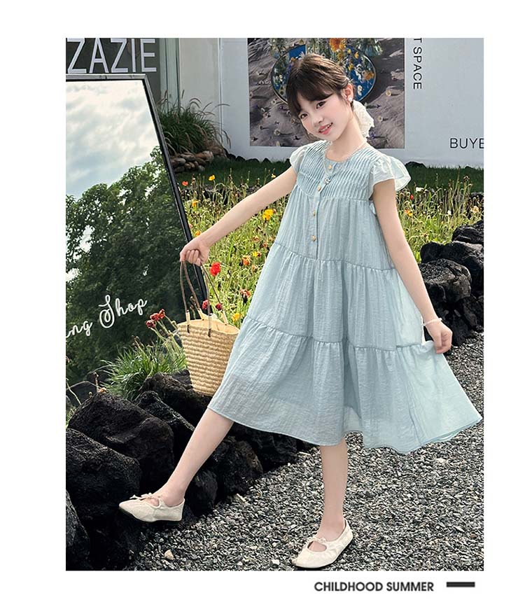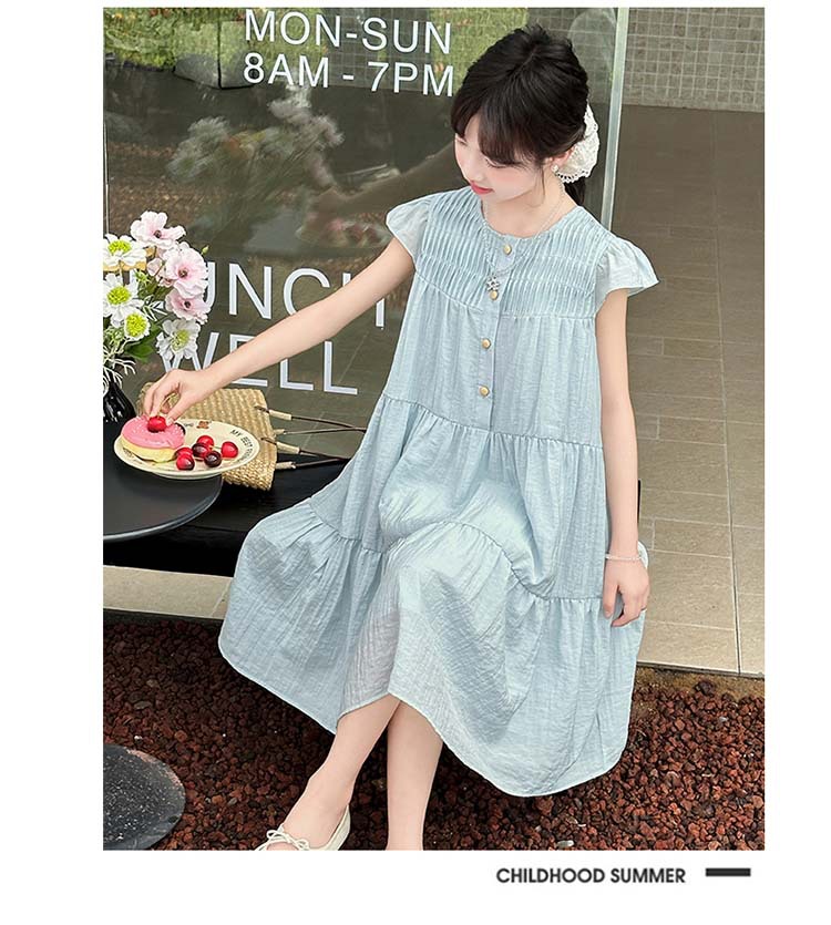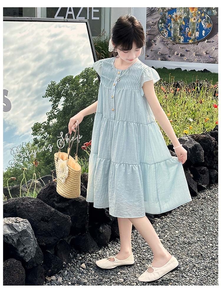 여아 드레스 여름 2025 새로운 스타일 아동 스타일 플라잉 슬리브 슈퍼 멋진 큰 어린이 여름 얇은 드레스스토어 가기