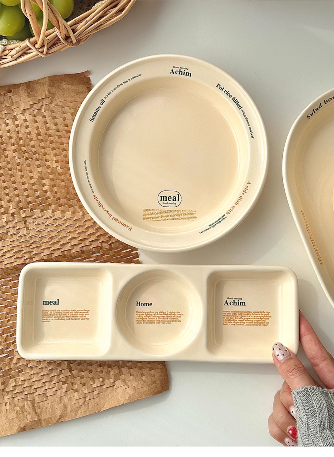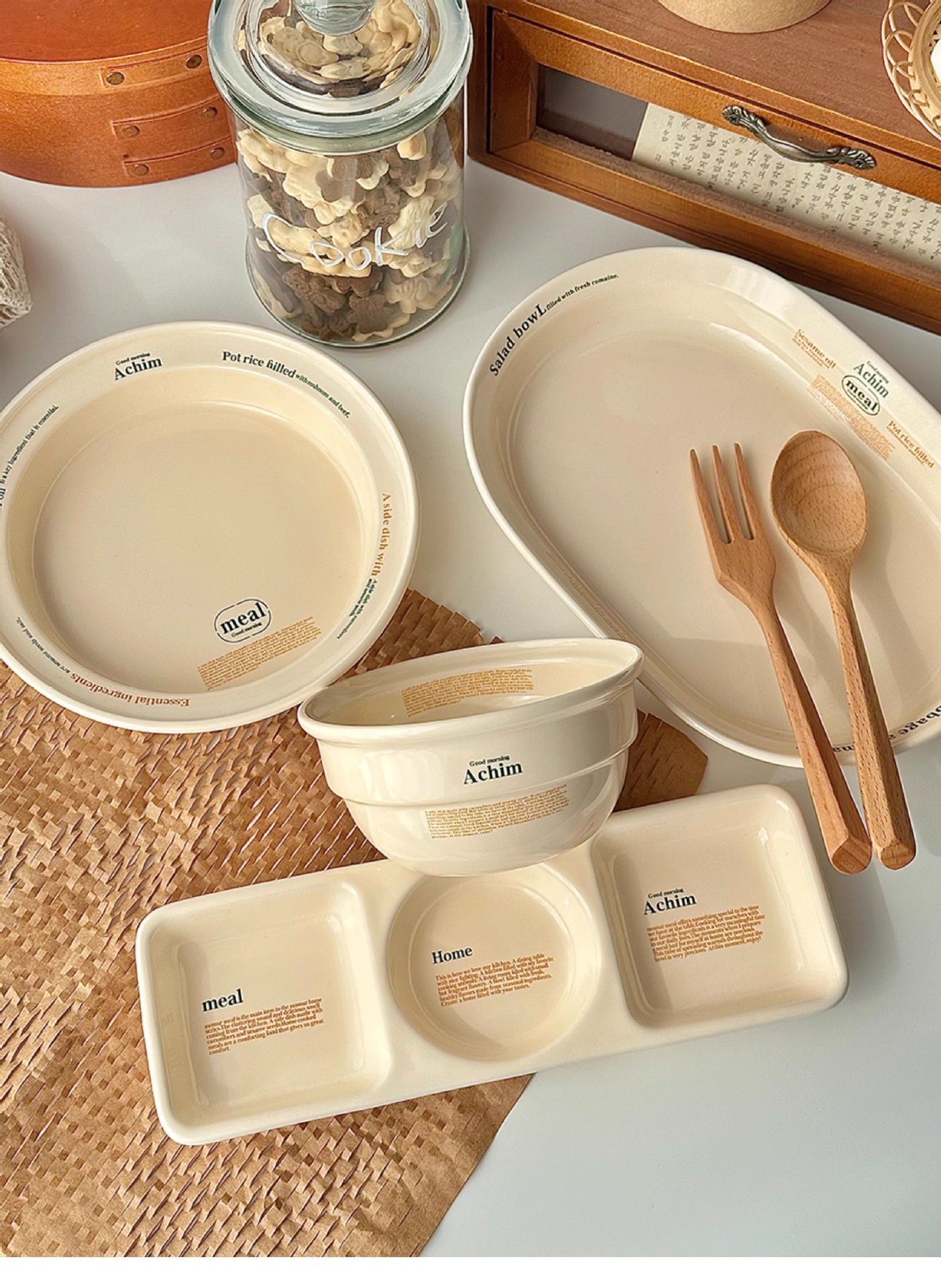 한국 주말 시리즈 크림색 식기 세라믹 핸드 컵 3칸 플레이트 밥그릇 수프 접시 타원형 접시스토어 가기