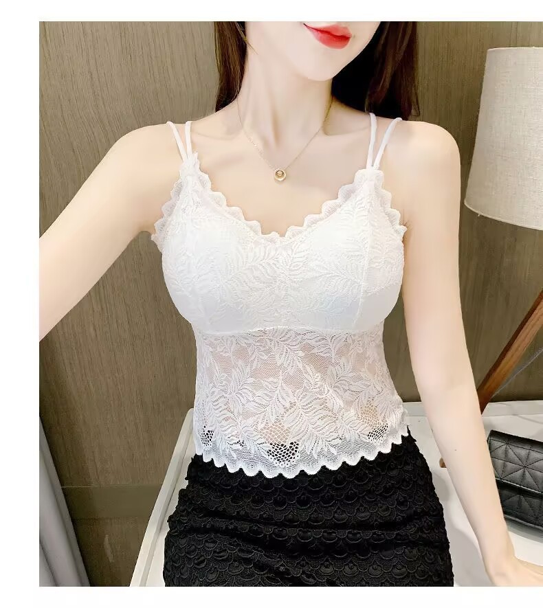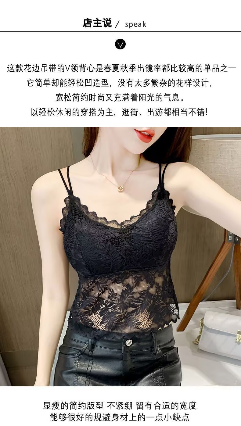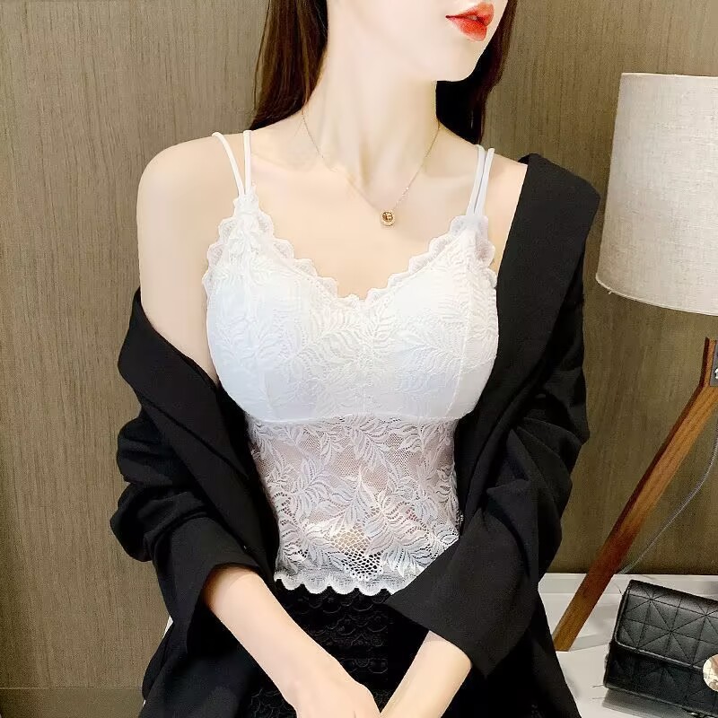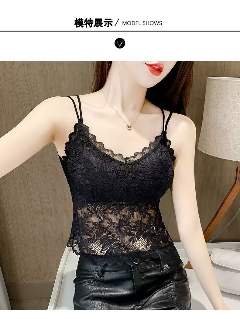 나비 레이스 아름다운 등 작은 캐미솔 이너 레이어드 탑 인터넷 연예인 트렌디 이너 레이어 가슴 패드가 있는 섹시한 조끼스토어 가기