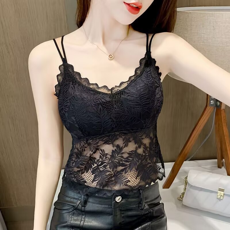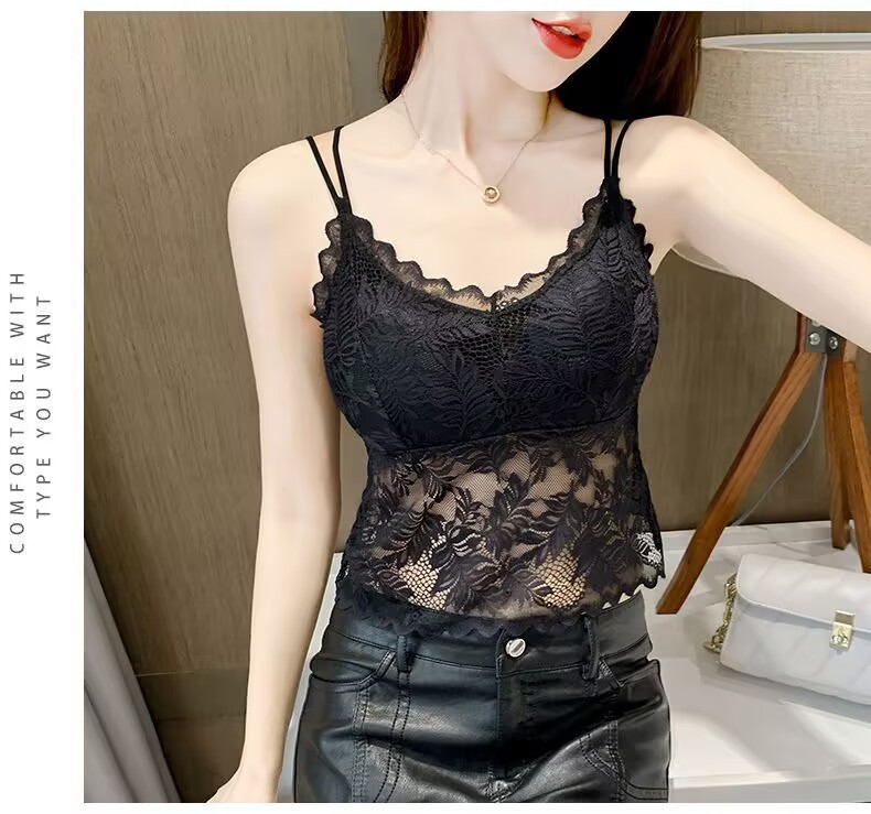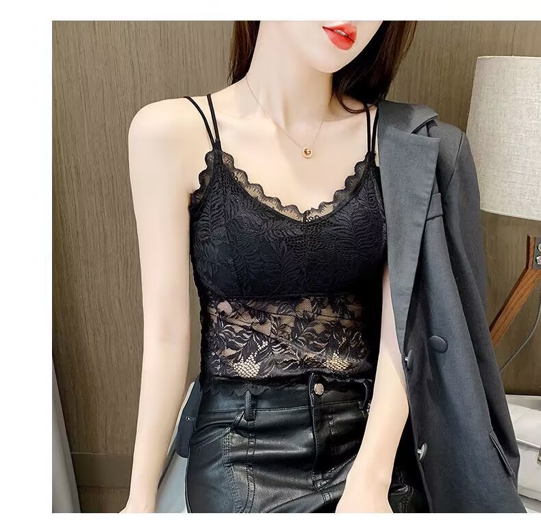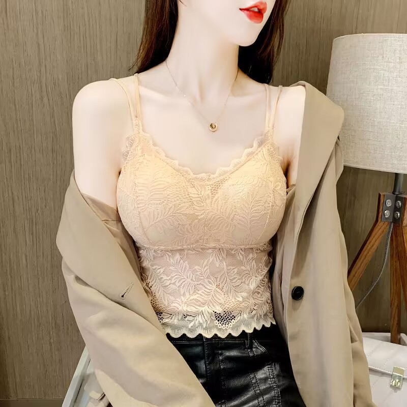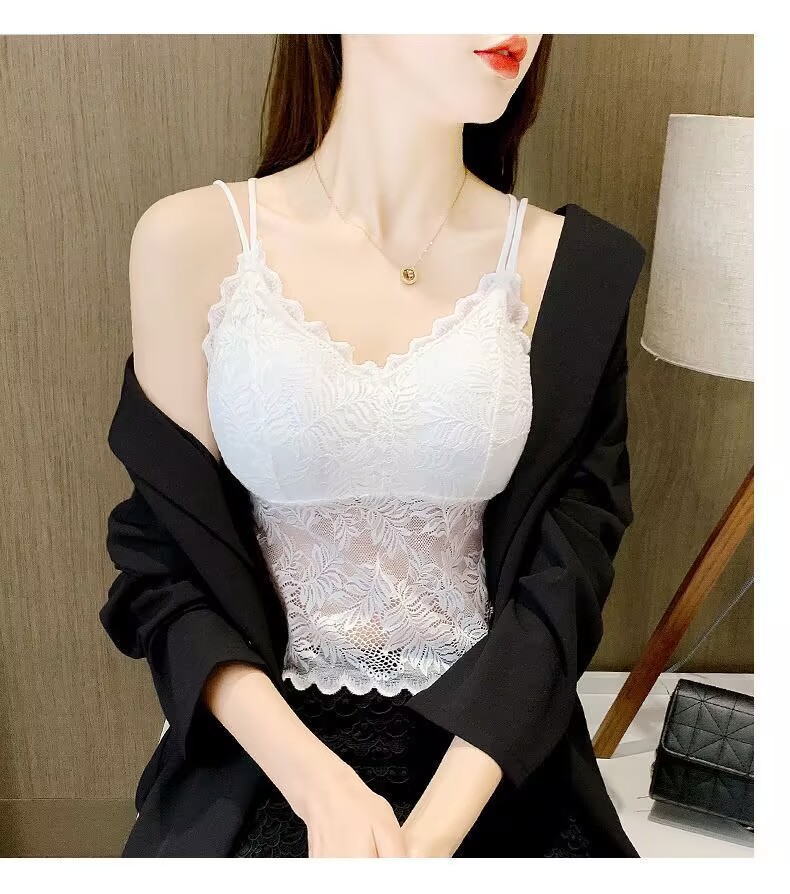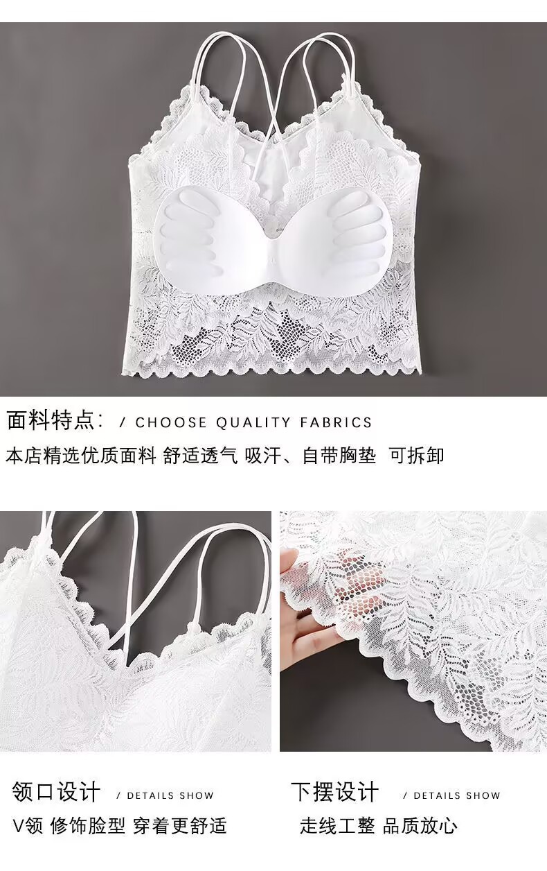 나비 레이스 아름다운 등 작은 캐미솔 이너 레이어드 탑 인터넷 연예인 트렌디 이너 레이어 가슴 패드가 있는 섹시한 조끼스토어 가기