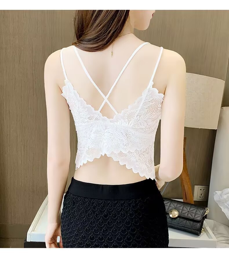 나비 레이스 아름다운 등 작은 캐미솔 이너 레이어드 탑 인터넷 연예인 트렌디 이너 레이어 가슴 패드가 있는 섹시한 조끼
