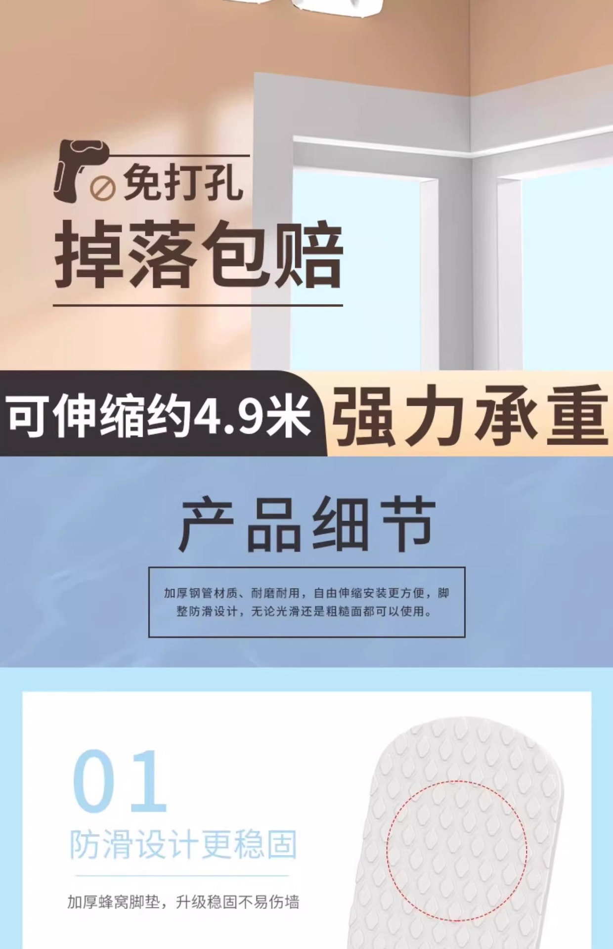 구멍이 없는 개폐식 빨래 건조대, 개폐식 설치 발코니 빨래 건조대, 커튼 걸이 빨래 건조대, 욕실 빨래 건조대스토어 가기