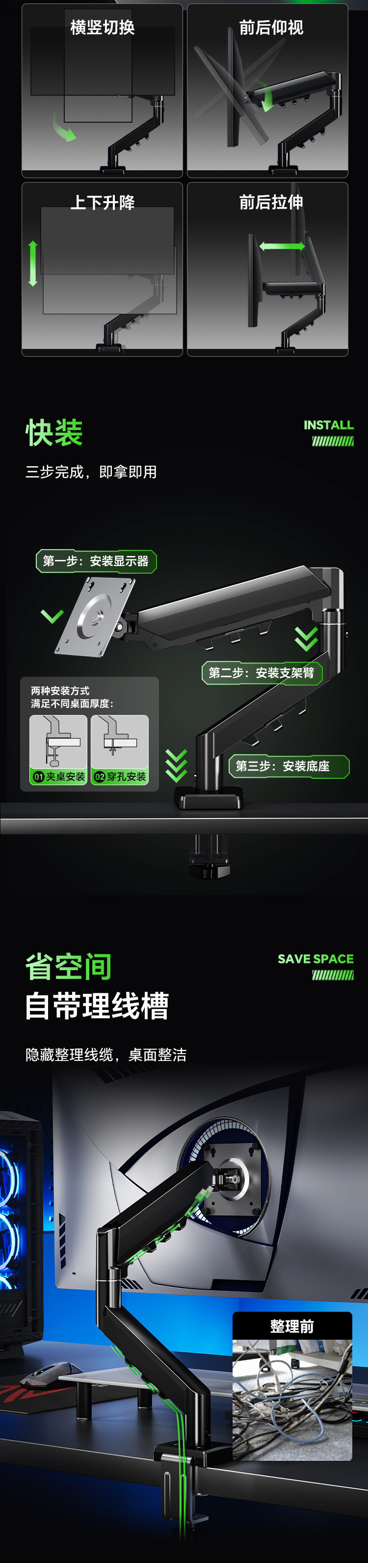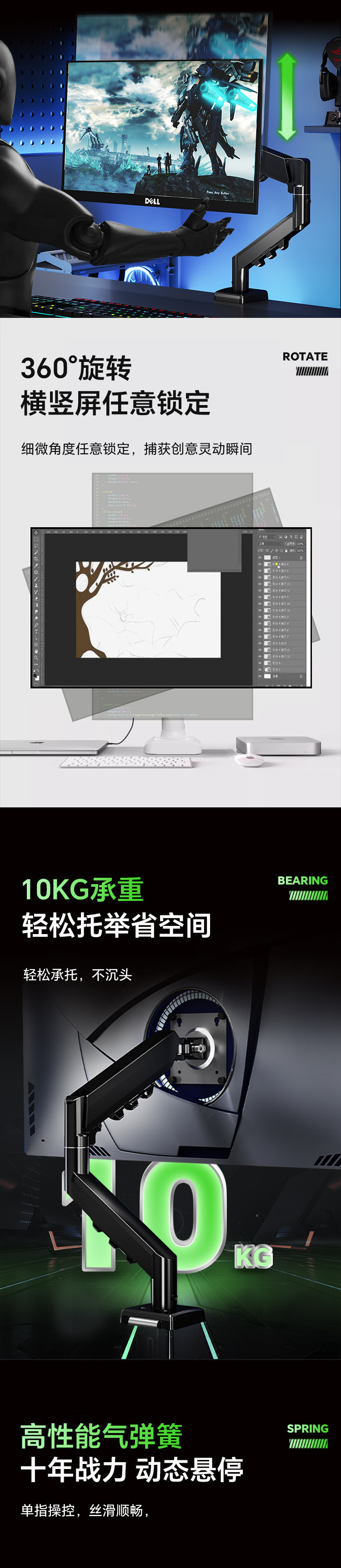 컴퓨터 노트북 디스플레이 스탠드 공기압 호버링 리프팅 회전 컴퓨터 높이 스탠드 사무실 모니터 베이스스토어 가기