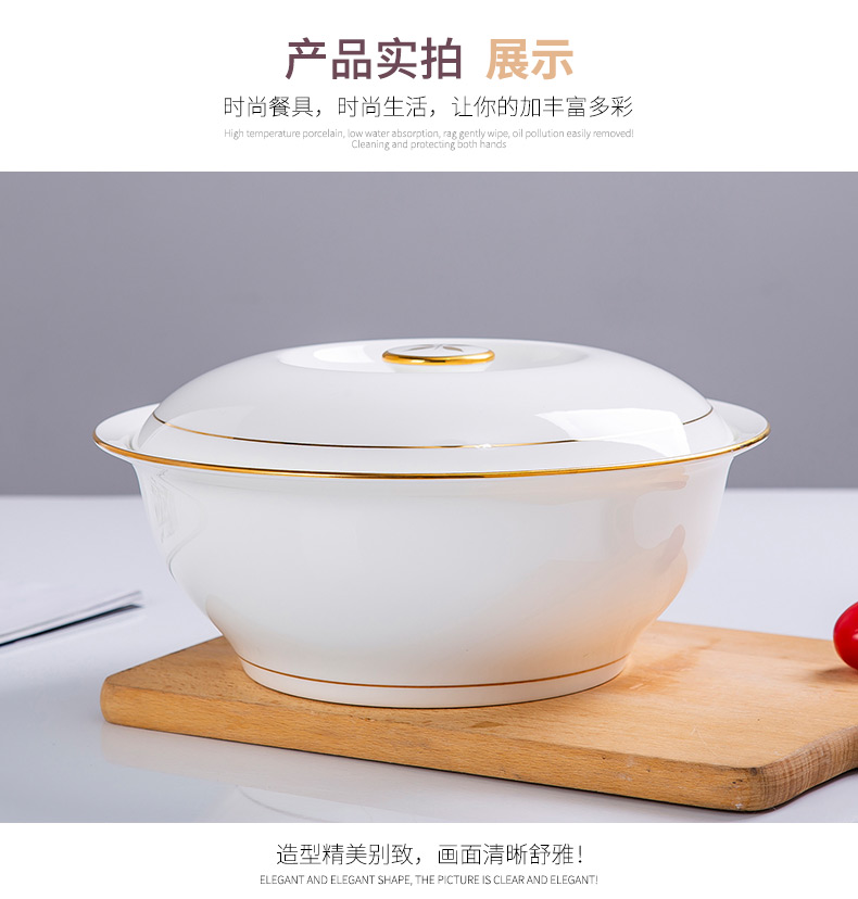 뚜껑이 있는 경덕진 둥근 세라믹 수프 그릇, 본차이나 금테 수프 냄비, 창의적인 대형 가정용 대형 수프 그릇스토어 가기