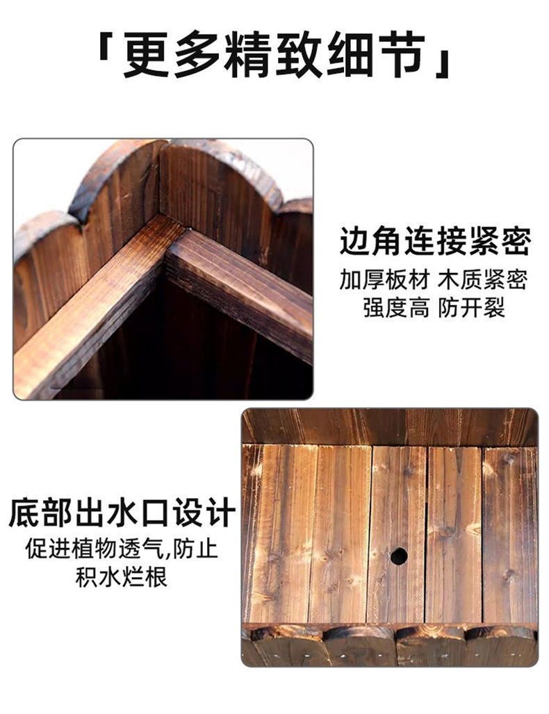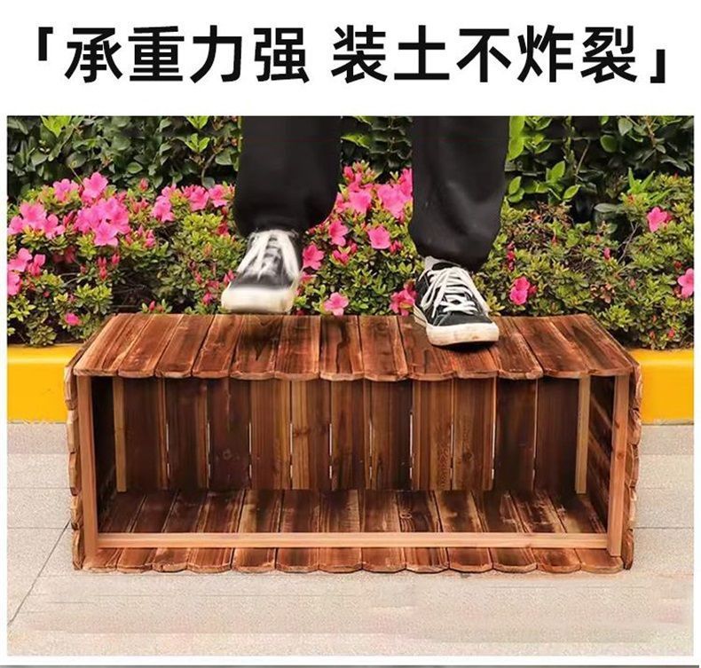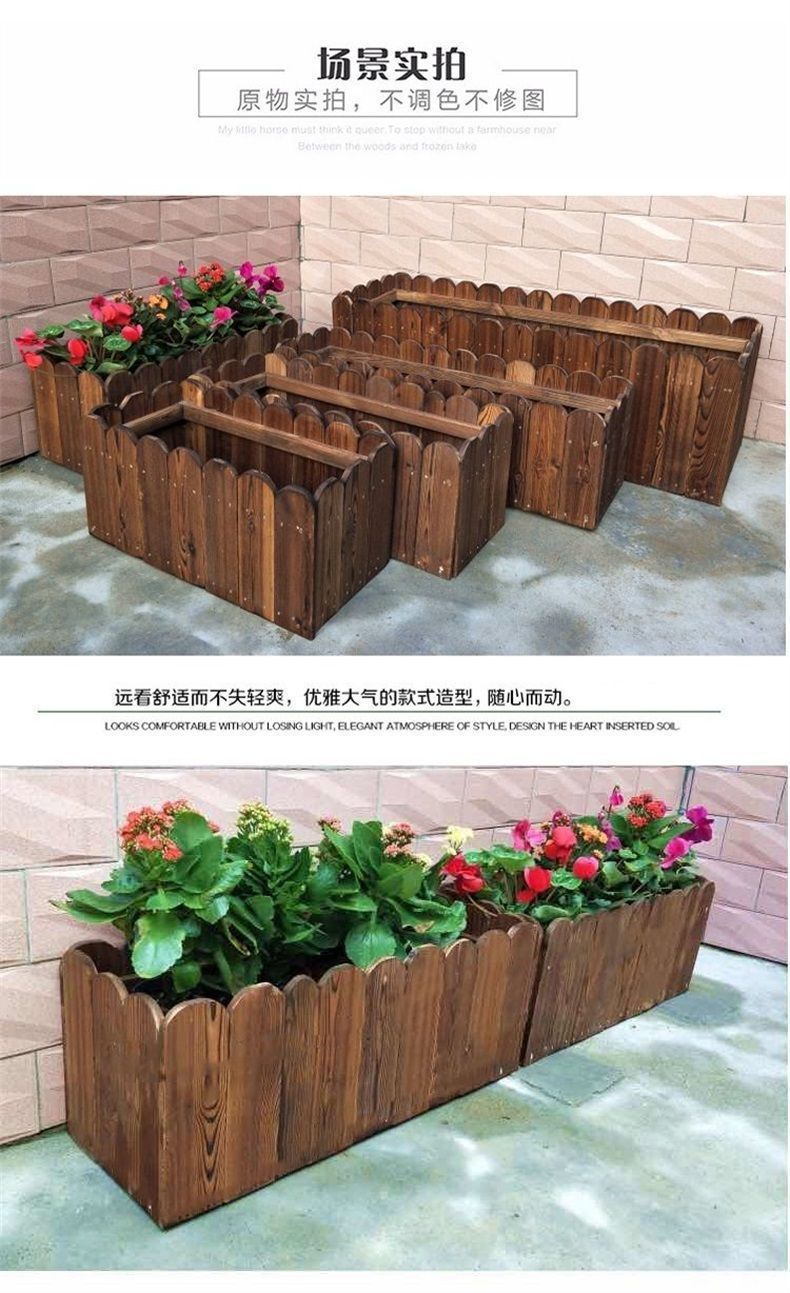 탄화 방부제 목재 꽃 상자 심기 상자 야외 직사각형 단단한 나무 화분 가정용 야채 정원 발코니 나무 꽃 상자스토어 가기