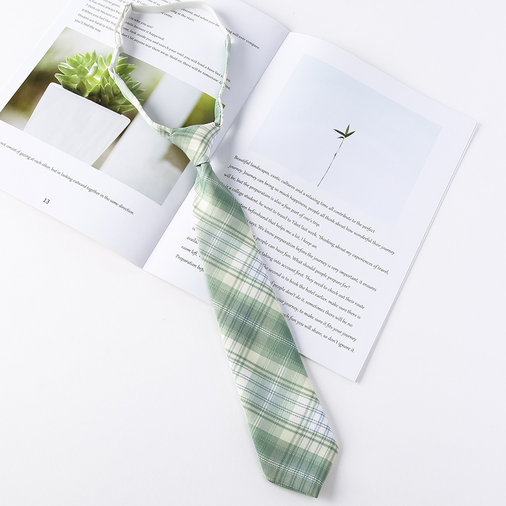 • 삼나무 투명 녹색 체크 무늬 넥타이