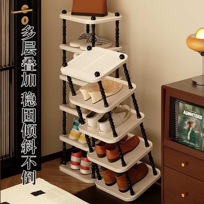 중세 스타일 신발장 가정용 다층 간단한 출입구 신발장 이동식 기숙사 다기능 플라스틱 신발장