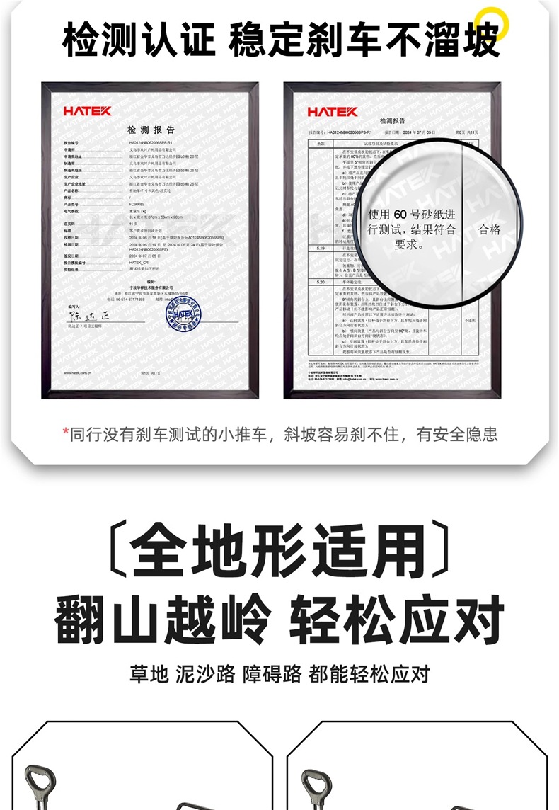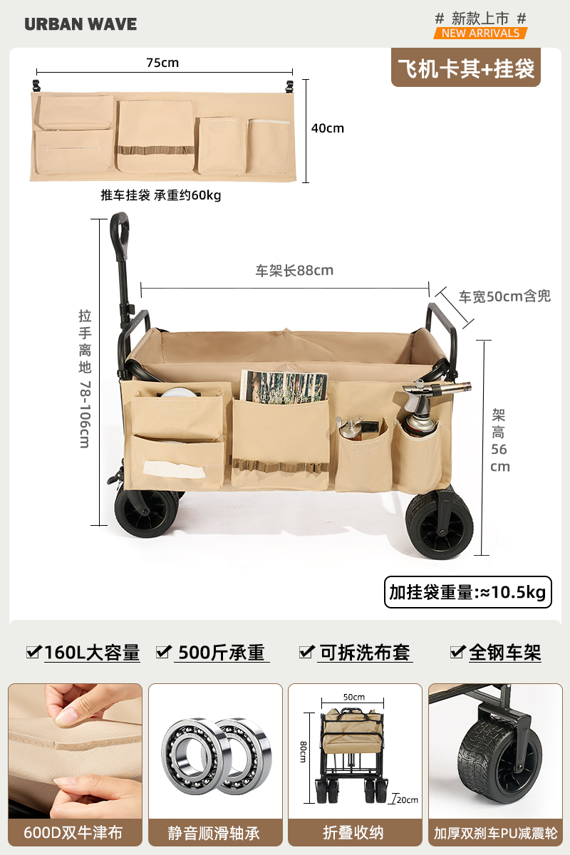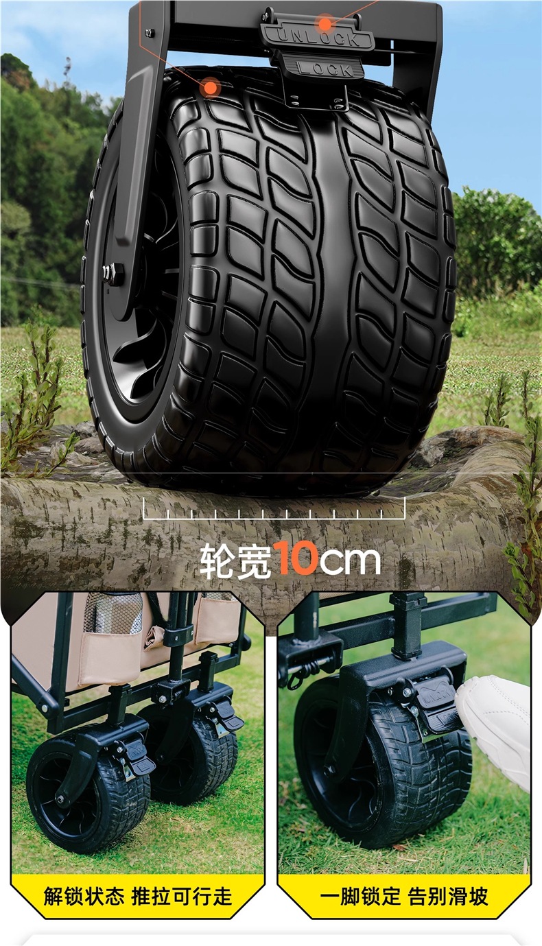• 에어크래프트 카키 [17cm 두꺼워진 이중 브레이크 충격 흡수 휠/내하중 250kg] 확대되고 두꺼워진 프레임