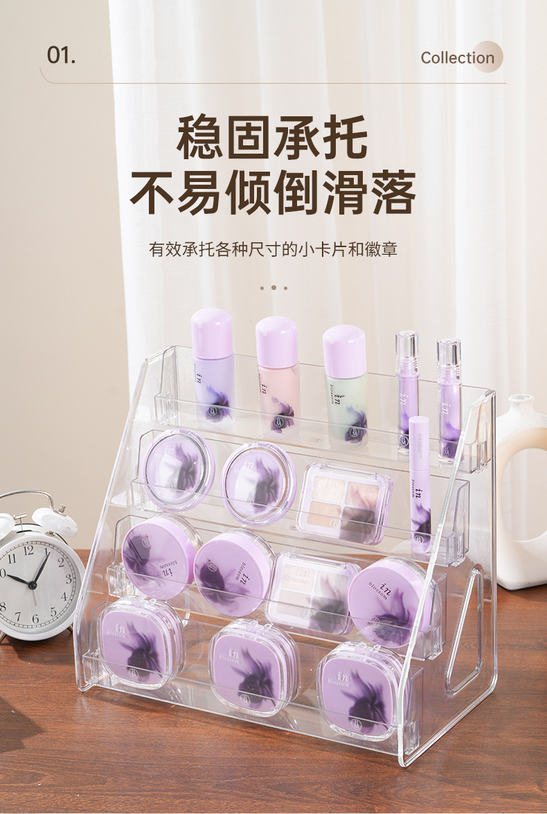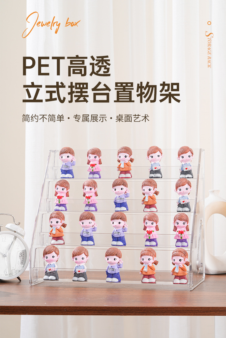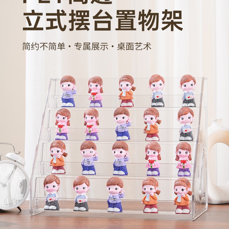 아크릴 투명 사다리 애니메이션 곡물 스탠드 업 배지 주변 데스크탑 디스플레이 선반 다층 바 디스플레이 스탠드