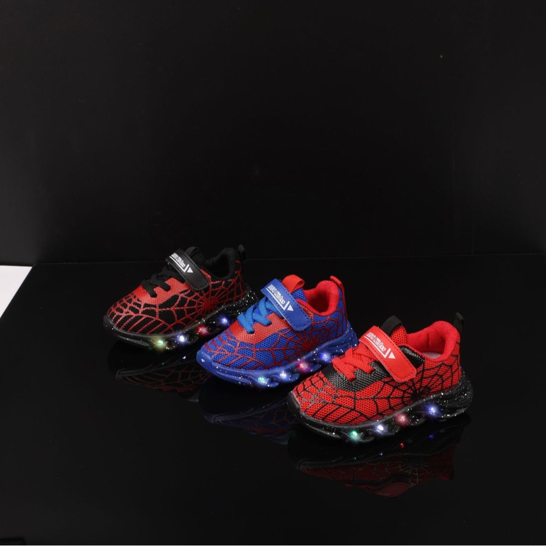 2025 스파이더 웹 어린이 스포츠 신발 통기성 패션 캐주얼 신발 아기 LED 조명 신발 아빠 신발스토어 가기